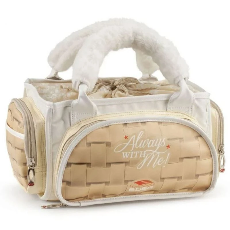kabelka Edea Always With Me Roztomilá a velmi praktická kabelka se spoustou úložných možností. Navržena pro vše potřebné a ještě něco navíc! Přinese trochu italského stylu na ledovou plochu i mimo ni!" Hlavní rysy:Držte krok s nejnovějšími módními trendy s kabelkou Always With Me, která je nyní k dispozici s odnímatelnými držadly z umělé kožešiny, módním vzorem košíkové vazby a stylovým bílým lemováním. 9 kapes, na make-up, mobilní telefon, ručník, nápoje, klíče, tablet, CD na hudbu a bloky. všechny velmi stylové a uzavíratelné na zip. velkou kapsu na kosmetické potřeby lze pro snadný přístup zcela rozepnout. navržena tak, aby se dala nasadit na rukojeť vozíku Edea Reflex.
