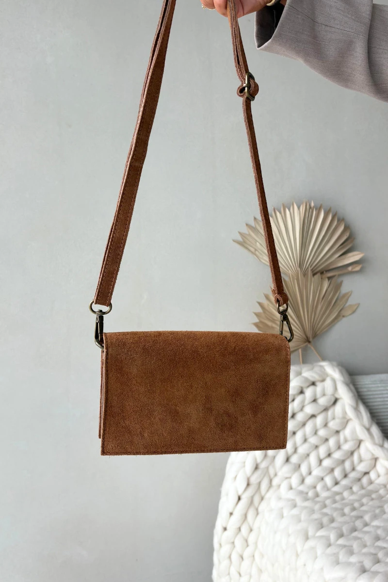 Malá kabelka vyrobená z přírodního semiše je elegantní a univerzální doplněk, který se hodí jak na každý den, tak na výjimečné příležitosti. Model s magnetickým klipem je pohodlný na používání a odnímatelný, nastavitelné popruh umožňuje přizpůsobit způsob nošení podle individuálních potřeb – na rameni nebo v ruce. Díky kompaktní velikosti a nadčasovému střihu krásně doplní různé styly, dodávající jim třídu a jemnou eleganci.