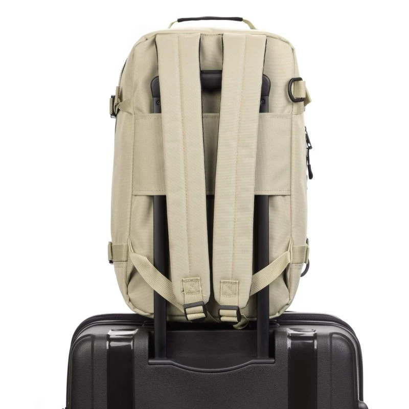 - Hlavní přihrádka a tři menší kapsy, včetně jedné síťované, nabízejí chytré uspořádání prostoru pro nezbytné věci a drobnosti. Další kapsa na zip na vnější straně je ideální pro doklady, telefon nebo tablet. Speciálně navržené madlo pro připevnění batohu k rukojeti kufru usnadňuje pohodlný pohyb se zavazadlem.