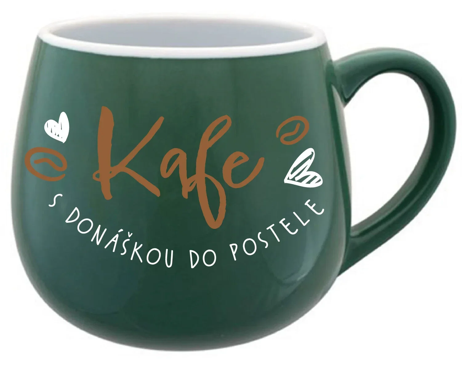 KAFE S DONÁŠKOU DO POSTELE - zelený keramický hrníček 300 ml