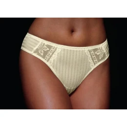 Elelgantní dámské tanga Felina Vás zaujmou na první pohled. Kombinace proužkované a průhledné vyšívané látky vypadá velice luxusně. Materiál: 69% polyamid, 21% elastan, 10% polyetser