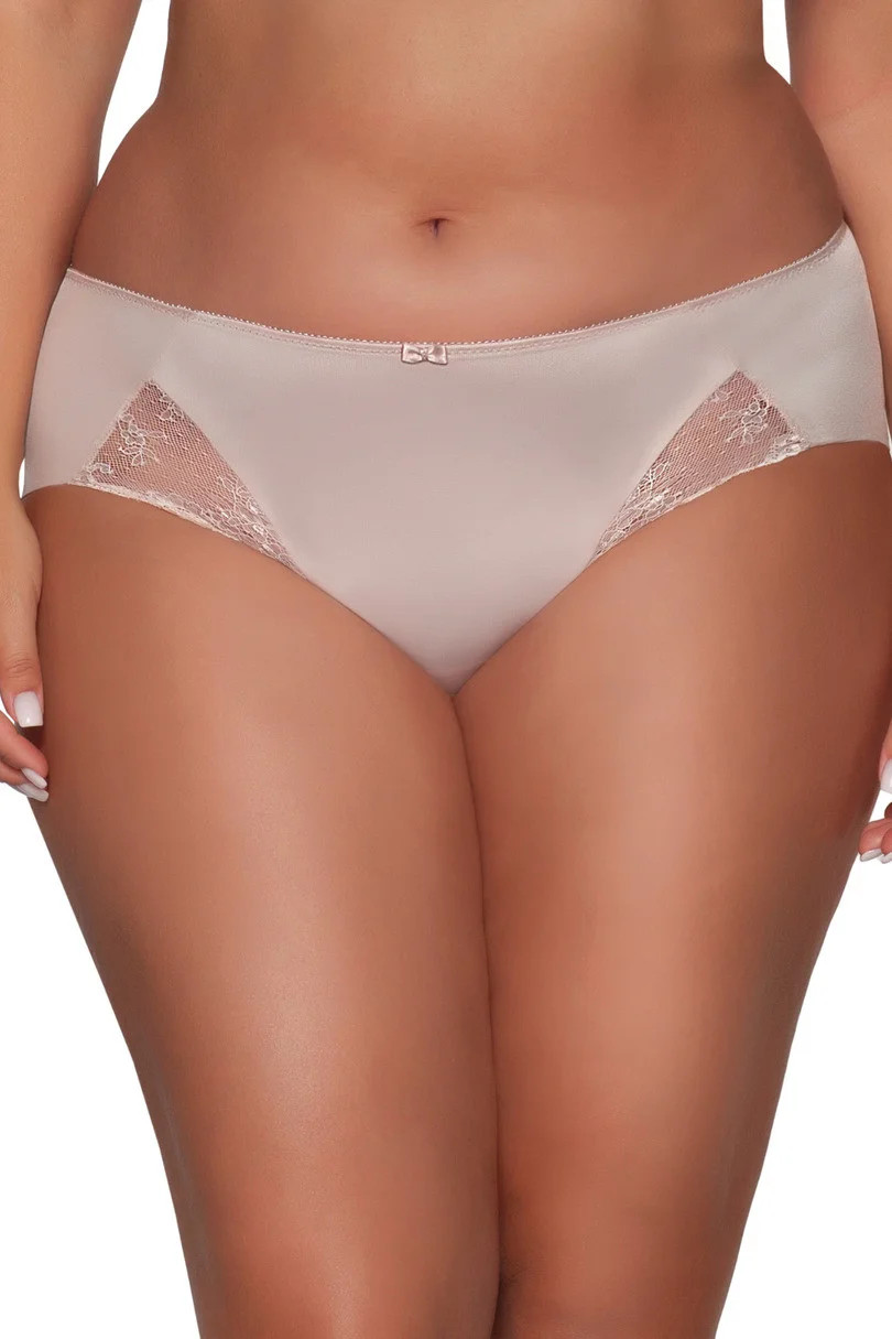 Klasické dámské kalhotky s plným střihem, přední díl ozdobený krajkou, zadní díl hladký.