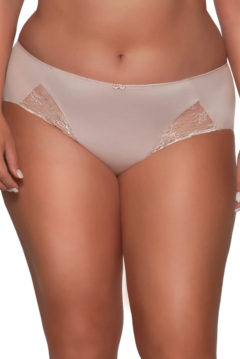 Klasické dámské kalhotky s plným střihem, přední díl ozdobený krajkou, zadní díl hladký.