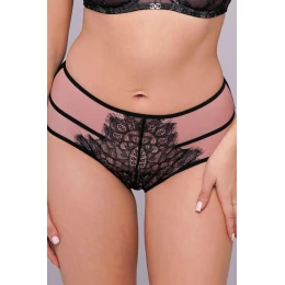 Elegantní a mimořádně pohodlné kalhotky s vysokým pasem, vytvořené pro ženy, které ocení klasiku a jemné detaily. Přední část kalhotek byla ozdobena jemným proužkem a krajkovým akcentem, který celku dodává smyslný charakter. Zadní část zůstává hladká, díky čemuž spodní prádlo působí minimalisticky a nevyčnívá pod oblečením. Dodatečná úprava síťovaným proužkem zajišťuje pohodlí při nošení a dokonalé přizpůsobení siluetě.