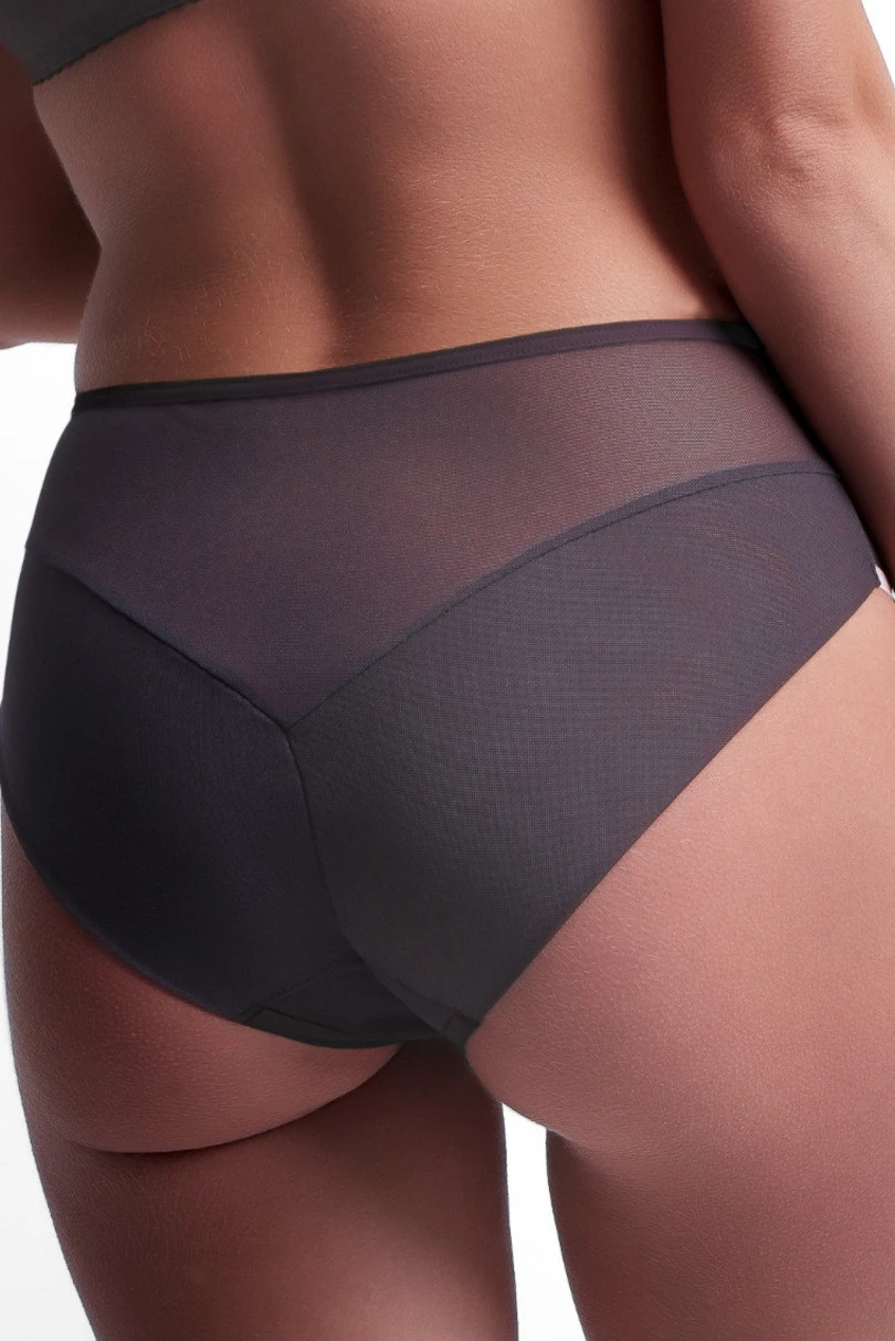 Hnědé klasické dámské kalhotky jsou kombinací nadčasového střihu, jemné elegance a výjimečného pohodlí při nošení. Jsou vyrobeny z jemné, lehce průhledné síťoviny, dokonale se přizpůsobí siluetě a zdůrazní její přirozené tvary. Klasický střih poskytuje plnější krytí a pohodlí po celý den - v práci i při zvláštních příležitostech.