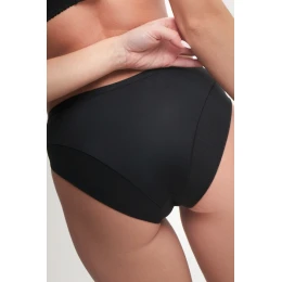 Hladké, plné kalhotky s ozdobnou síťovinou na bocích jsou dokonalou kombinací klasické elegance, pohodlí a moderního designu. Model v nadčasové černé barvě byl navržen pro ženy, které ocení pohodlí a estetické zpracování spodního prádla.
