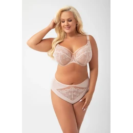 Figi Adore K931 w eleganckim beżowym odcieniu to połączenie kobiecej delikatności i wygody noszenia. Wykonane z podwójnej, elastycznej siateczki doskonale dopasowują się do sylwetki, nie uciskając i nie odznaczając się pod ubraniem. Przód majtek zdobi subtelna koronka o kwiatowym wzorze, która nadaje całości lekkości i klasy.