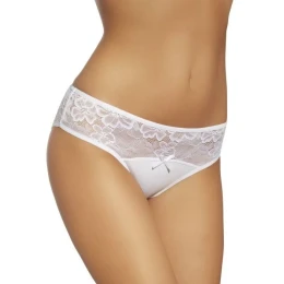 Jemné kalhotky z kombinace květinové elastické krajky a hladké bavlny. Krajkový horní díl s lehce průsvitným efektem. Zakrytý spodní díl, vpředu zdobený mašličkou. Materiál: 95 % bavlna, 5 % elastan.
