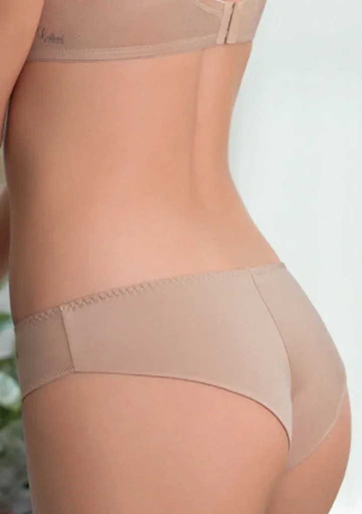 Kalhotky střihu "brazilky" jsou z velmi komfortního příjemného a prodyšného materiálu. Střih má mírně vyšší bokovou část a lem v oblasti zadečku je řešen dvojitou vrstvou materiálu bez prostřihu a švu - pouze přeložením, díky čemuž perfektně přiléhá k tělu, nic nerýsuje a dvojitá vrstva materiálu zadeček také mírně tvaruje a "drží" ve srovnání s ostatními brazilkovými střihy. Dokonalá kombinace třeba k bezkosticové push-up podprsence typu "Motýlí křídla" ze stejné kolekce LEILIEVE by Manicardi SOFY C7400.