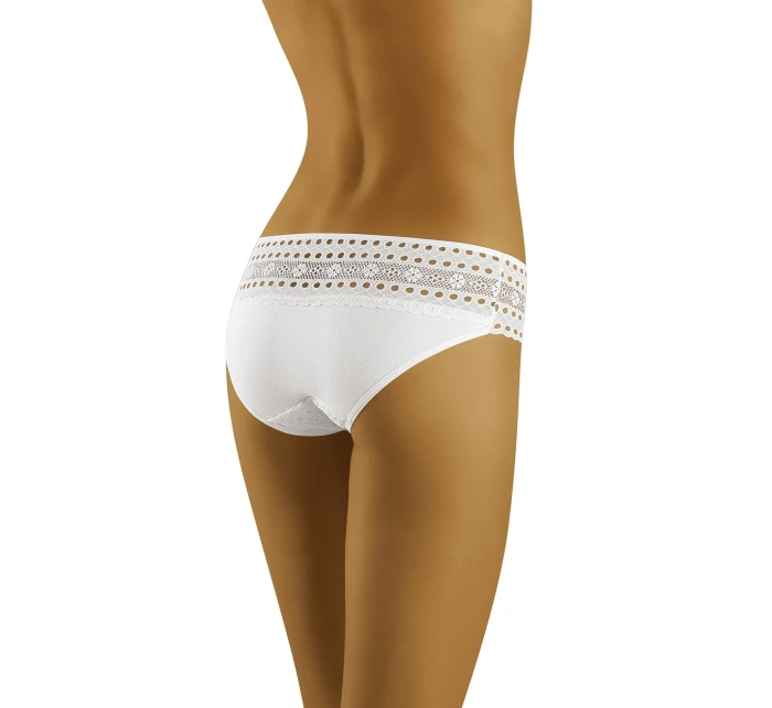 Velmi ženské bavlněné kalhotky z jemného ažurového úpletu, hladká zadní část s ozdobným vrškem, složení: 90 % bavlna, 7 % elastan, 3 % polyamid.