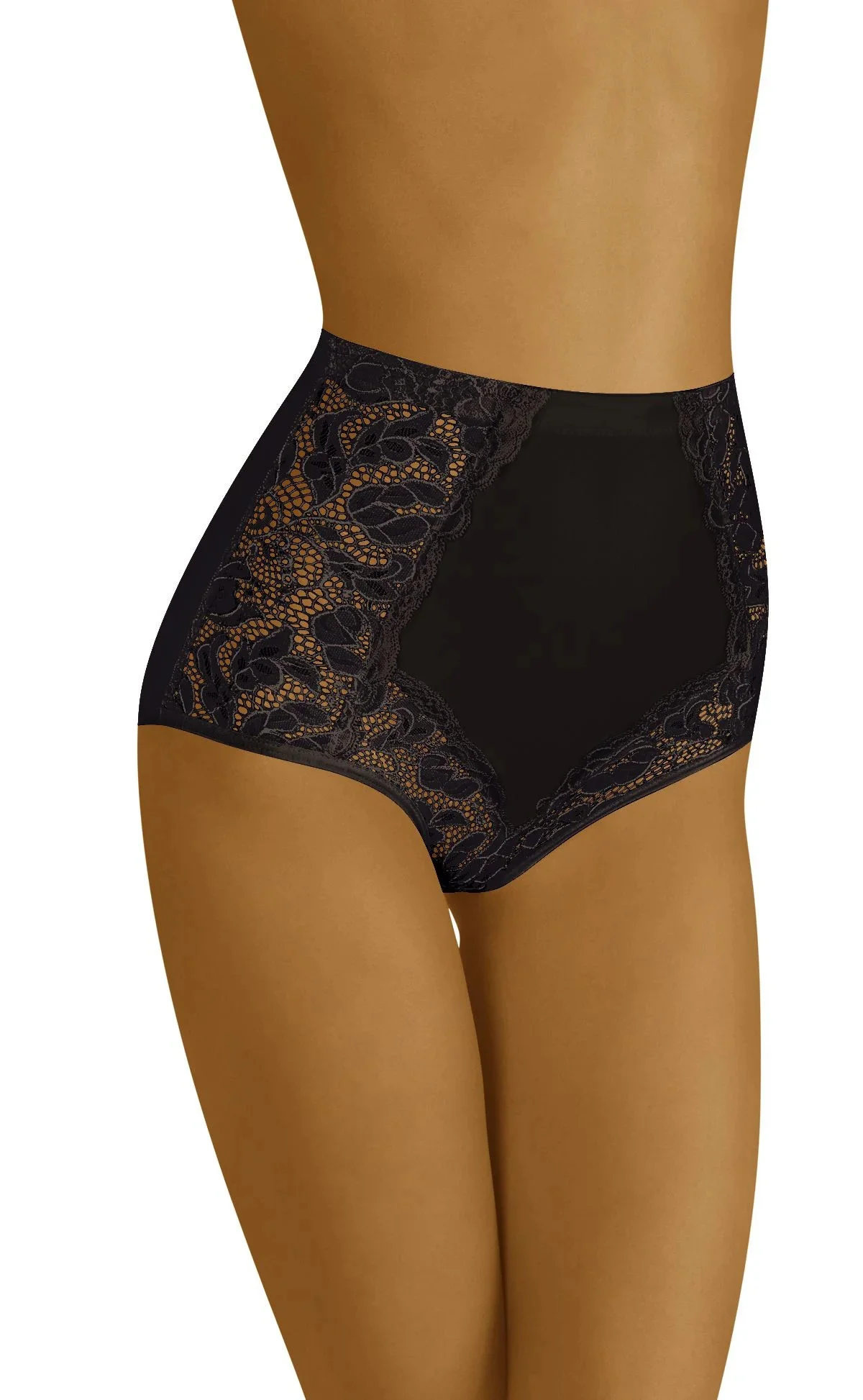 Vyšší postavy, modelování pasu a boků - Eleganta je spodní prádlo, které chceme doporučit. Je vyrobena z příjemného úpletu s vložkami z krásné ažurové krajky a vypadá krásně a bezvadně. Pásek se silikonovou vložkou na vnitřní straně. Složení: 59 % polyamid, 41 % elastan.