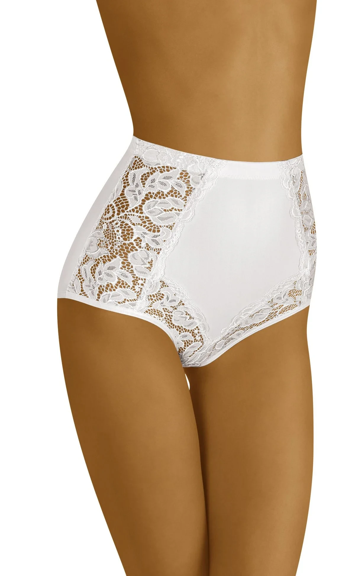 Vyšší postavy, modelování pasu a boků - Eleganta je spodní prádlo, které chceme doporučit. Je vyrobena z příjemného úpletu s vložkami z krásné ažurové krajky a vypadá krásně a bezvadně. Pásek se silikonovou vložkou na vnitřní straně. Složení: 59 % polyamid, 41 % elastan.