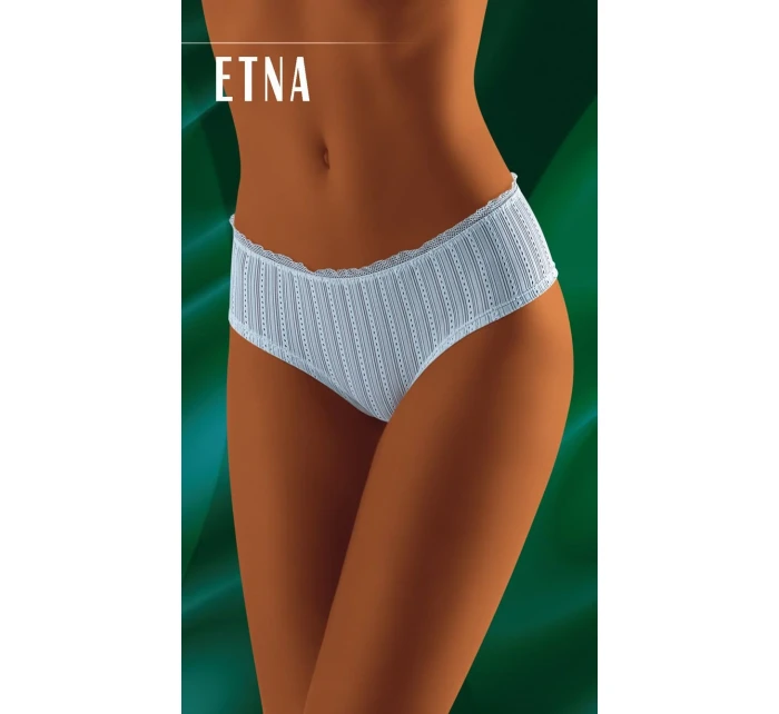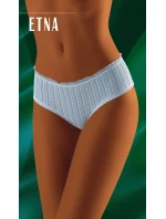 Klasické dámské kalhotky s plným střihem, přední díl ozdobený krajkou, zadní díl hladký.