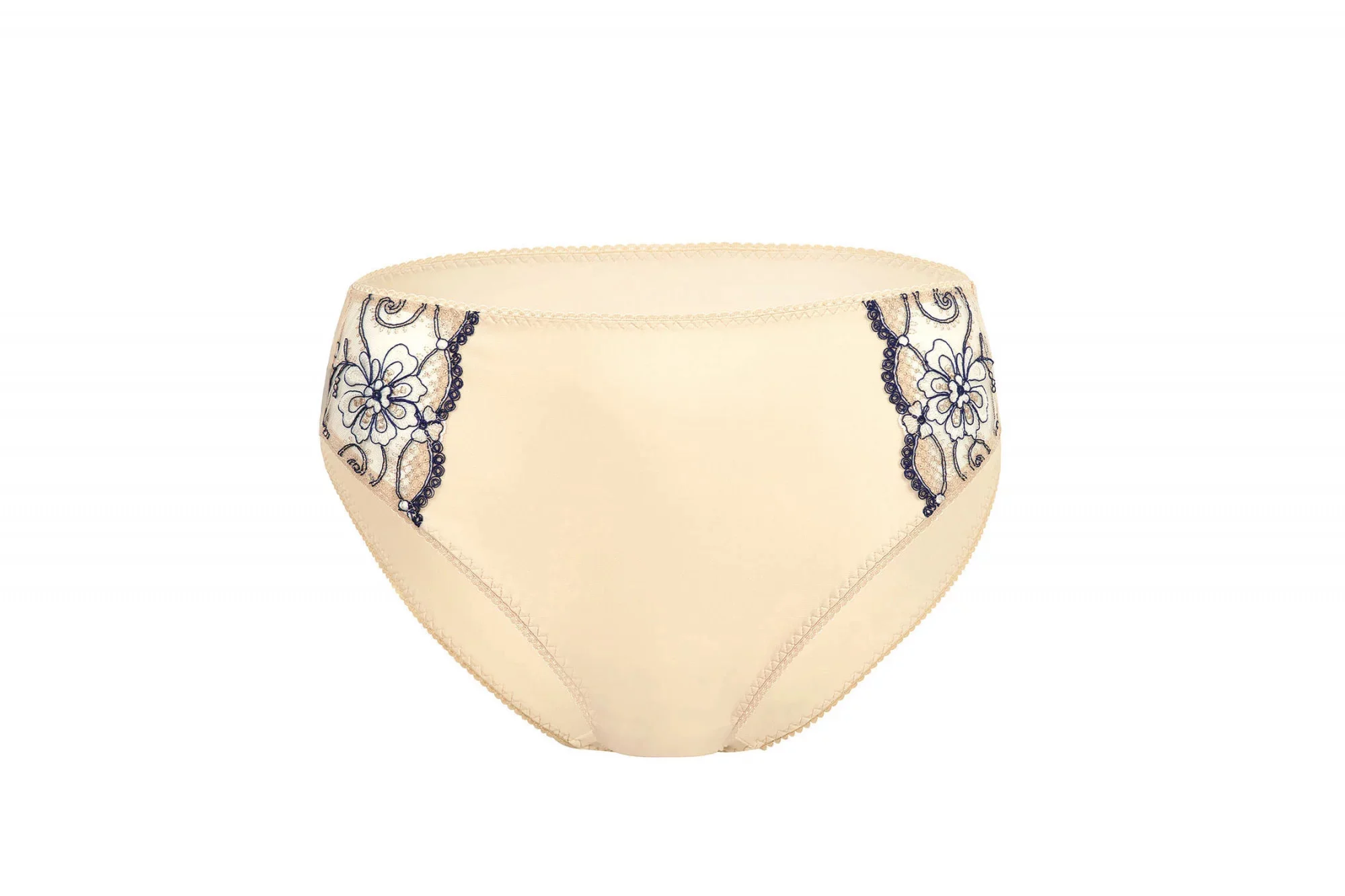 Velmi pohodlné kalhotky se zvýšeným pasem. Kalhotky jsou ušity z hladkého mikrovlákna na bocích jsou ozdobeny italskou výšivkou Di Fagnano RICAMIFICIO s květinovým vzorem.