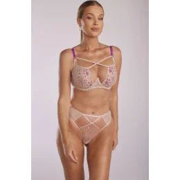 - vyšívané květiny a zkřížené pruhy na přední straně