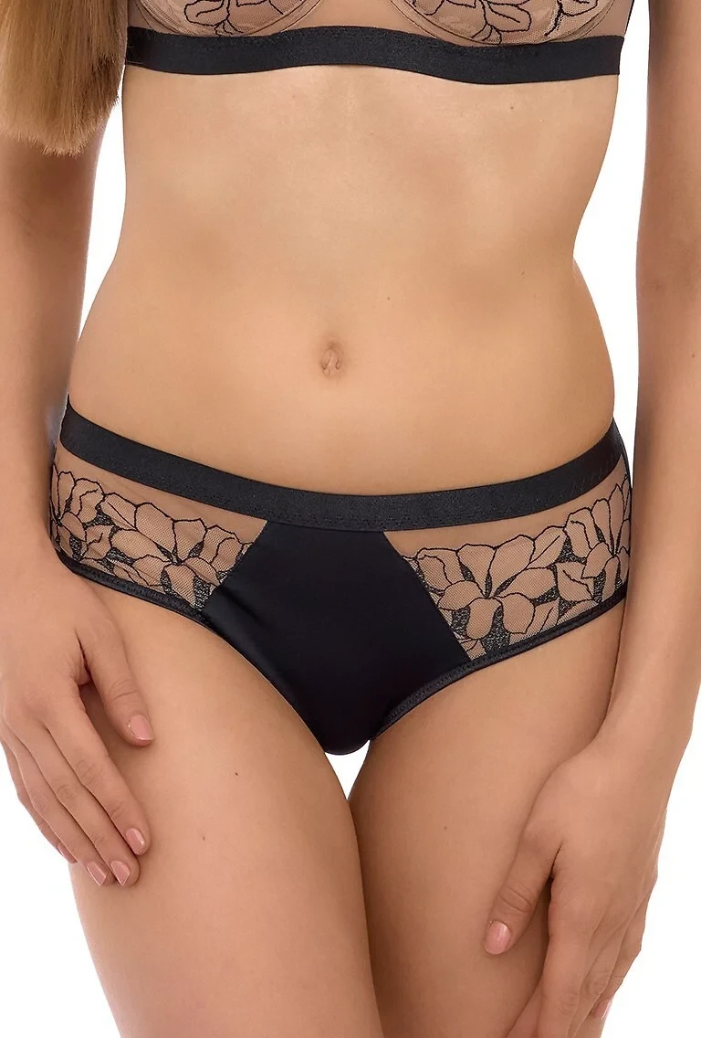 - z mikrovlákna a béžové síťoviny zdobené černou výšivkou