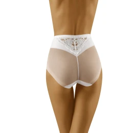 Velmi ženské kalhotky vyššího střihu doplněné vsadkami z krásné krajky. Přední část s vertikálními řezy, modeluje oblast břicha a boků. Zadní část s jemným průsvitným efektem jemně nadzvedává hýždě. Vysoká kvalita. Složení: 58 % polyamid, 42 % elastan.