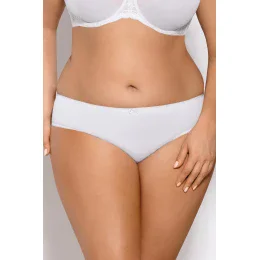 Klasické hladké kalhotky z mikrovlákna v kombinaci s jemnou krajkou. Nožičky v přední části jsou zakončeny decentní gumičkou. Záda jsou zakončena krajkovým lemem. Přední strana je zdobena malou mašlí.