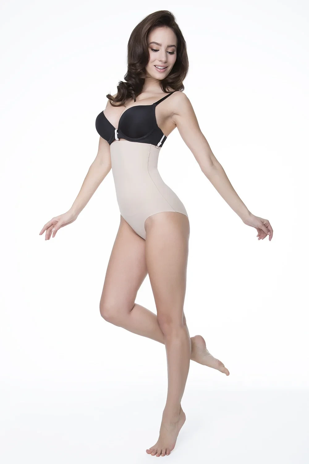 Jedinečné kalhotky tvarující postavu, které lze diskrétně připevnit k podprsence ze tří stran pomocí přiložených pásků, čímž se ještě více zvyšuje pohodlí při nošení modelujícího a zeštíhlujícího prádla. Velmi promyšlený střih - zapínání v rozkroku. Vysoce kvalitní prodyšná tkanina. Kalhotky modelují tvar zadečku, zeštíhlují bříško a zdůrazňují pas. Mohou být velmi užitečné.