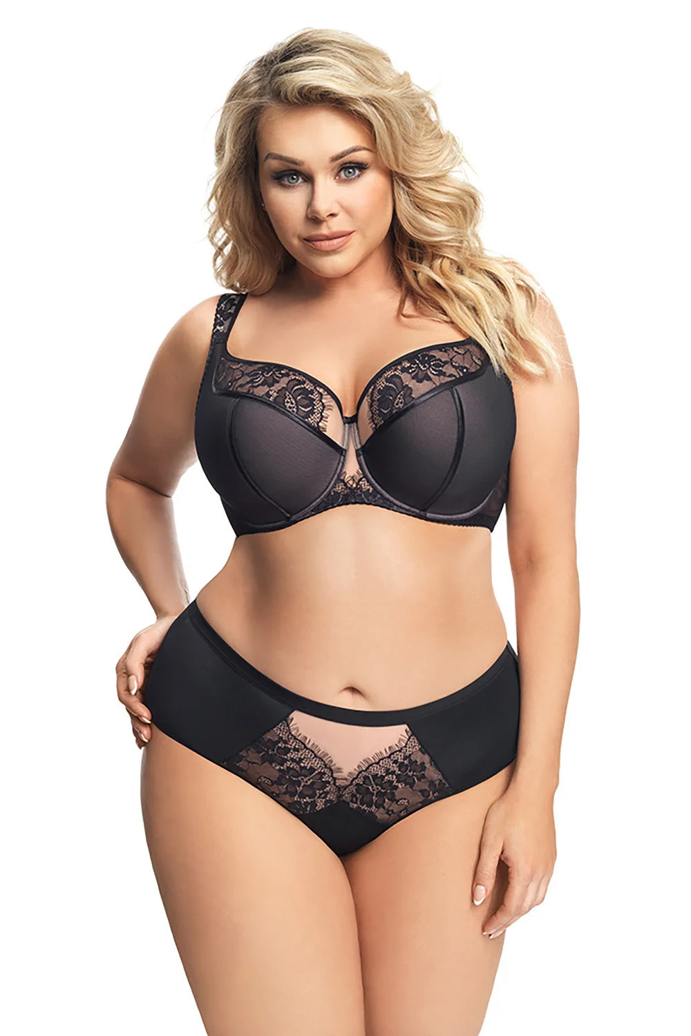 Plné, elegantní kalhotky, které vám umožní krásný, ženský vzhled i plné pohodlí. Přední díl je vyroben z kombinace jemného tylu, elastického úpletu a neuvěřitelně krásné květinové krajky, která v podobě ozdoby zdobí přední díl spodního prádla. Zadní díl s krajkovou vsadkou v horní části.
