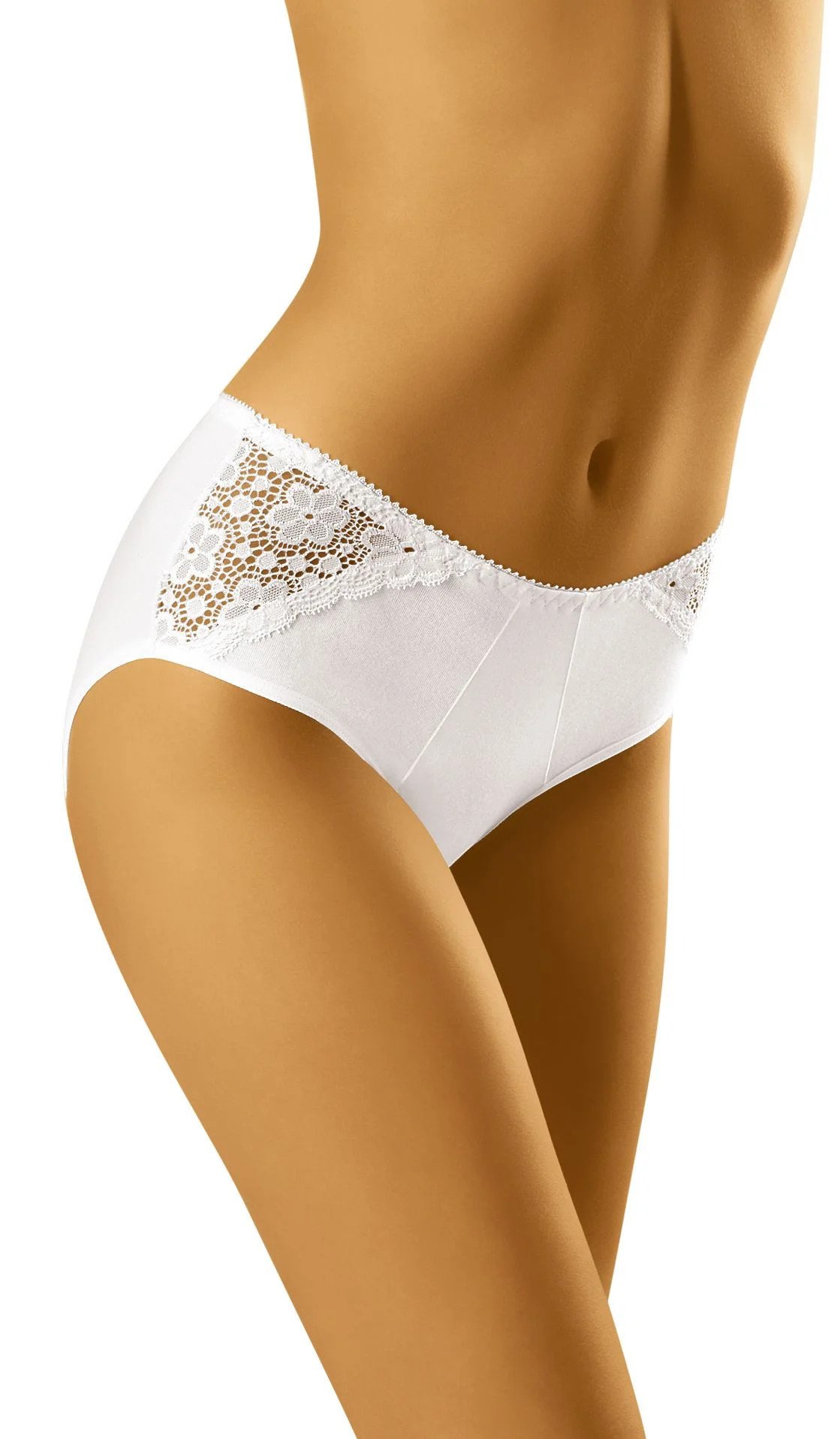 Vyšší klasické kalhotky, které mírně tvarují linii boků. Vyrobeno z vysoce kvalitního bavlněného úpletu. Boky jsou doplněny květinovými krajkovými vsadkami. Složení: 90 % bavlna, 7 % elastan, 3 % polyamid.