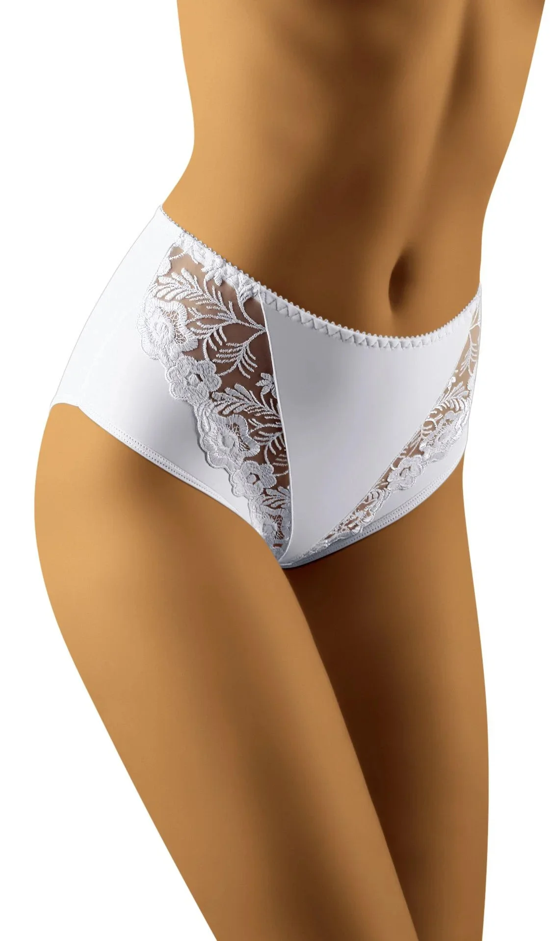 Gabe je mírně plnější spodní díl, který dokonale sedí na těle a pružně ho tvaruje. Zcela hladká zadní a přední strana je prošpikována ozdobnou krajkou, která koketně přechází po přední straně kompozice. Inspirujícím a výrazným prvkem se zde stávají velké, jemné květy s krásně rozkvetlými poupaty, které přinášejí úžasný, velmi ženský vzhled. Pohodlí v kombinaci s elegantním šarmem.
