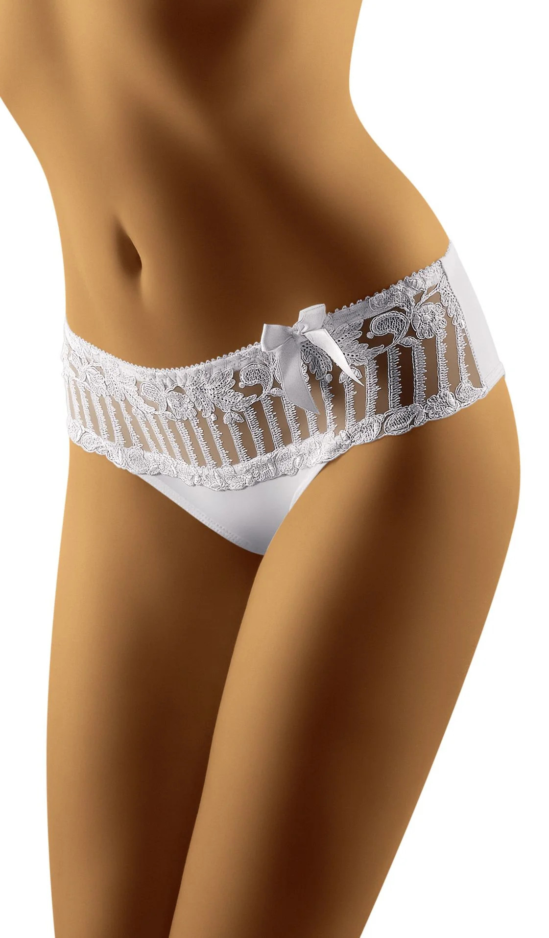 Jemná hra vyšívaných motivů s pohodlným klasickým střihem - kalhotky Mela. Přední strana vypadá "lehce" a jemně díky použití krásné průhledné krajky. Hladká záda. Složení: 87 % polyamid, 13 % elastan.