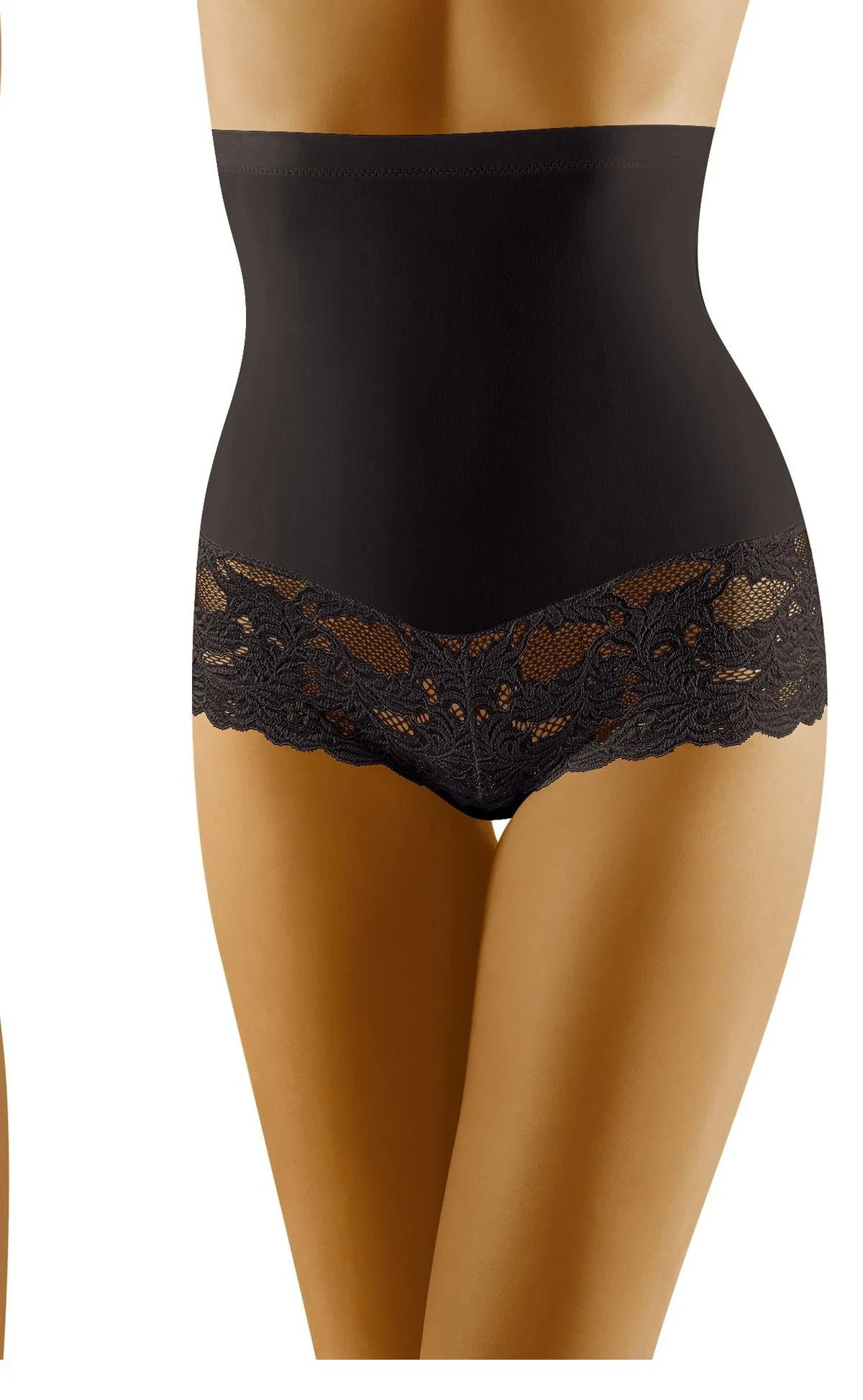 Spodní díl bikin s vysokým pasem, který láká na krásnou prolamovanou krajku ve spodní části a nahoře zvýrazňuje vaši siluetu. Mírně ji stlačí, zeštíhlí bříško, zvýrazní pas a vytvaruje linii stehen. Vyrobeno z měkké tkaniny. Silikonová páska na vnitřní straně, která udrží spodní prádlo na místě (kalhotky nesklouznou dolů). Krajka rozhodně potěší oko a zvýrazní hýždě. Spodní prádlo pro "speciální úkoly" snad ještě nikdy nebylo tak sexy! Složení: 59 % polyamid, 41 % elastan.