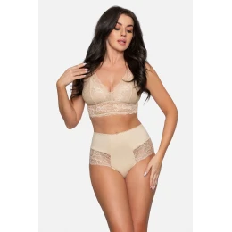 Pohodlné kalhotky s vysokým pasem vyrobené z vysoce kvalitní bavlny. Střih umožňuje volnost pohybu. Vysoká linie pasu, vestavěné boky, ažurové krajkové vsadky na přední straně.