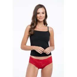 Elegantní krajkové kalhotky pro ženy. Pevné klasické kalhotky v červené barvě, které lákají na pohled květinovým vzorem z elastické krajky a motýlkovým okrajem. Kvalitní krajka použitá na kalhotkách je hustá a dobře kryje. Díky technologii JULIMEX Laser-cut nevyčnívají žádné nitky. V pase ani ve výřezech na stehnech nejsou žádné švy, takže kalhotky zůstávají neviditelné pod přiléhavým oblečením. Kalhotky mají v rozkroku všitou bavlněnou hygienickou vložku.