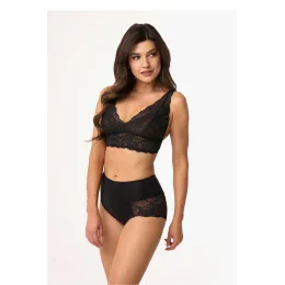 Dámské kalhotky vyrobené z hladké, měkké a prodyšné látky, která zajišťuje pohodlné nošení. Jemné krajkové ozdobení na stehnech dodává subtilní eleganci. Střih kalhotek zakrývá bříško a průsvitný zádový výstřih dodává smyslný vzhled. V pase se nachází jemná gumka, která dobře drží spodní prádlo, a uvnitř je bavlněná podložka pro další pohodlí. Kalhotky jsou baleny v elegantním krabičce, což z nich činí ideální dárek. Výrobek je navržen a ušit v Polsku s ohledem na nejvyšší kvalitu.