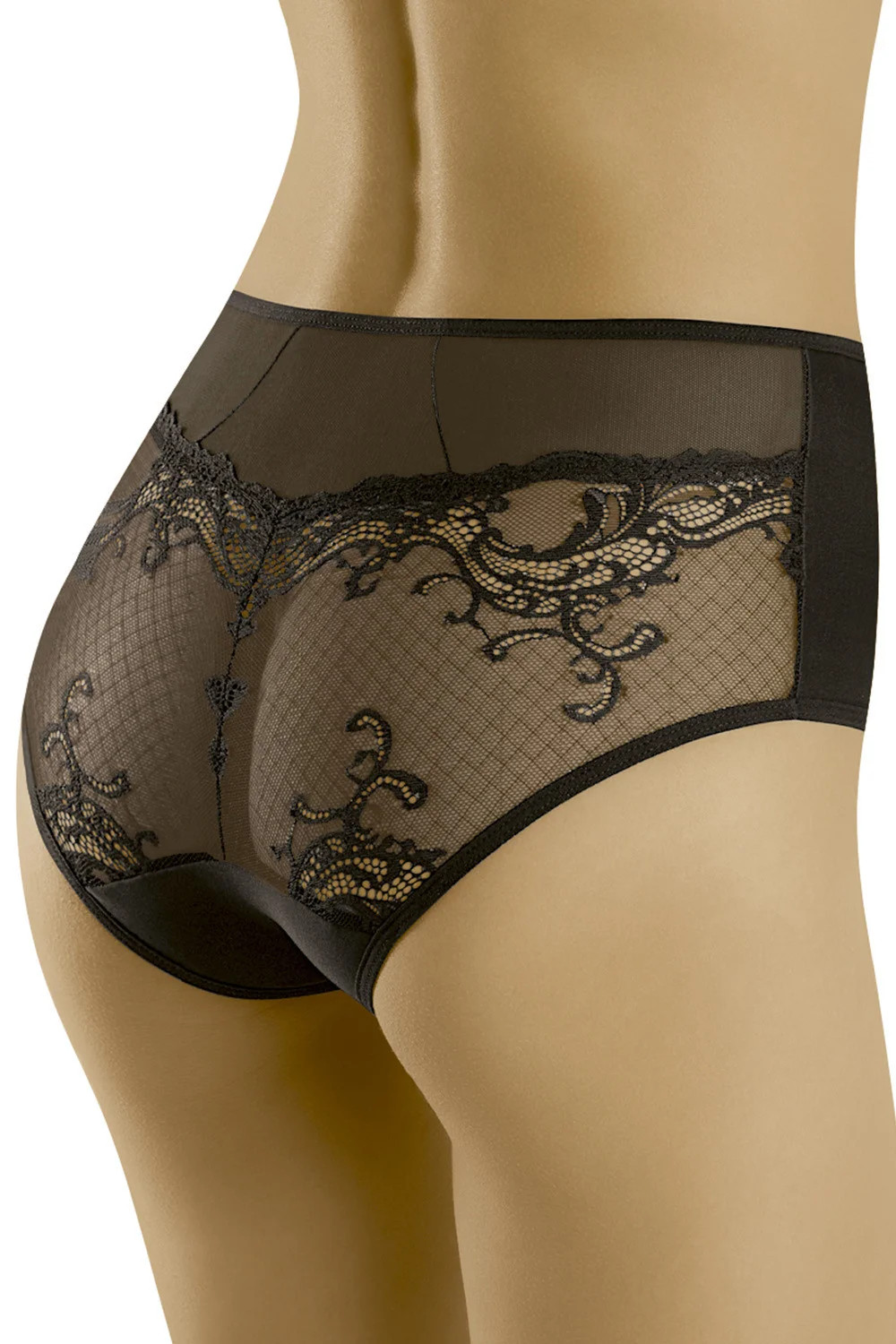 Představujeme elegantní kalhotky, které kombinují pohodlí a smyslnost. Vyrobeny z měkkého a prodyšného materiálu, zajistí pohodlné nošení po celý den. Kalhotky s vyšším střihem jsou zdobeny krajkovými detaily, které dodávají ženské kouzlo. Průhledný tyl jim dodává jemnou smyslnost a jemná guma v pase dokonale podpírá kalhotky bez ucpaní. Uvnitř je bavlněná vložka zajistí další pohodlí. Tyto kalhotky jsou baleny v elegantní krabici a jsou skvělou volbou pro ženy, které oceňují vysokou kvalitu a elegantní styl.