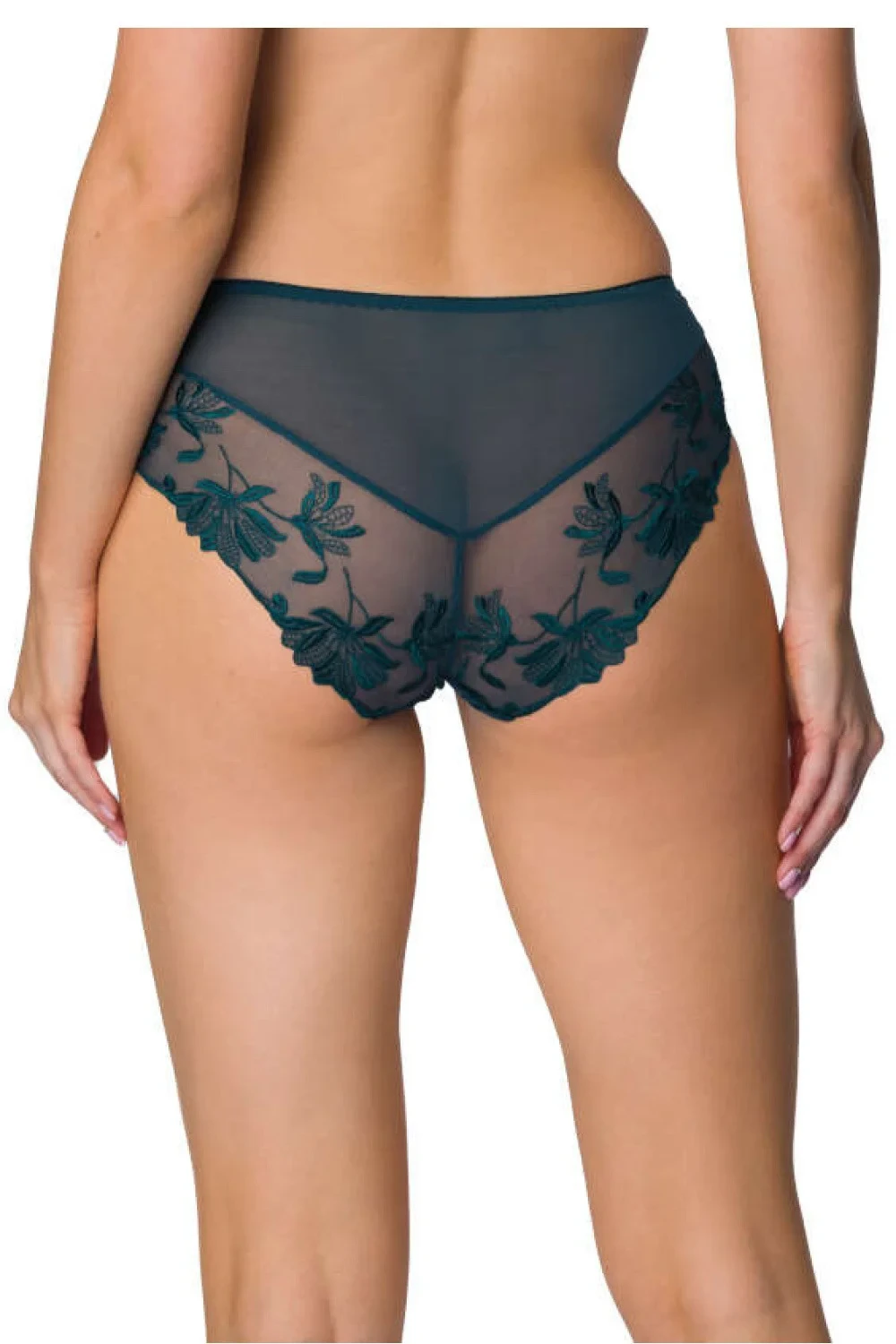 Figi Zephyr jsou stylové a pohodlné prádlo, které skvěle zdůrazňuje ženské tvary. Vyrobené z jemného síťovaného materiálu v hluboké zelené barvě, zdobené květinovým vyšíváním, dodávají eleganci a smyslný charakter. Díky preciznímu střihu se figi Zephyr perfektně přizpůsobí tělu, poskytují pohodlí po celý den. Na zádech mají jemně průhledné zakončení, což jim dodává lehkost a eleganci. Pokud hledáte výjimečné figy v barvě lahodné zeleně, model Zephyr je skvělou volbou na každou příležitost.