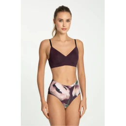 Vysoké figy v maxi střihu v limitovaném květinovém printu. Harmonické linie a květinový vzor tvoří spodní prádlo, které rozkvétá na těle. Sinné pupeny pivoňky a akvarelové přechody barev hluboké švestka, pudrová růžová a střízlivě zelená tvoří jedinečný malířský efekt. Okvětní lístky květů se rozlévají po materiálu s jemností akvarelu. Spodní prádlo, které obestírá pokožku jako nejjemnější samet a zároveň zdůrazňuje sebejistotu a jemný lesk ženskosti. Tento vzor připomíná, že každá žena má sílu kvést každý den krásně, přirozeně a ve svém rytmu.