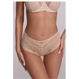 Ženské kalhotky s klasickým střihem, kombinující pohodlí nošení s jemnou smyslností. Přední část je zdobena jemnou krajkou, která dodává prádlu lehkost a elegantní charakter, zatímco průsvitný záda efektně zdůrazňují siluetu. Zakryté boky zaručují pohodlné přizpůsobení a stabilitu během nošení. Model je zakončen plochou gumou, která nevtlačuje a zůstává neviditelná pod oblečením. Uvnitř je bavlněný vložka, zaručující pohodlí a hygienu každý den. Kalhotky jsou baleny v elegantní krabičce, díky čemuž se skvěle hodí i jako dárek.