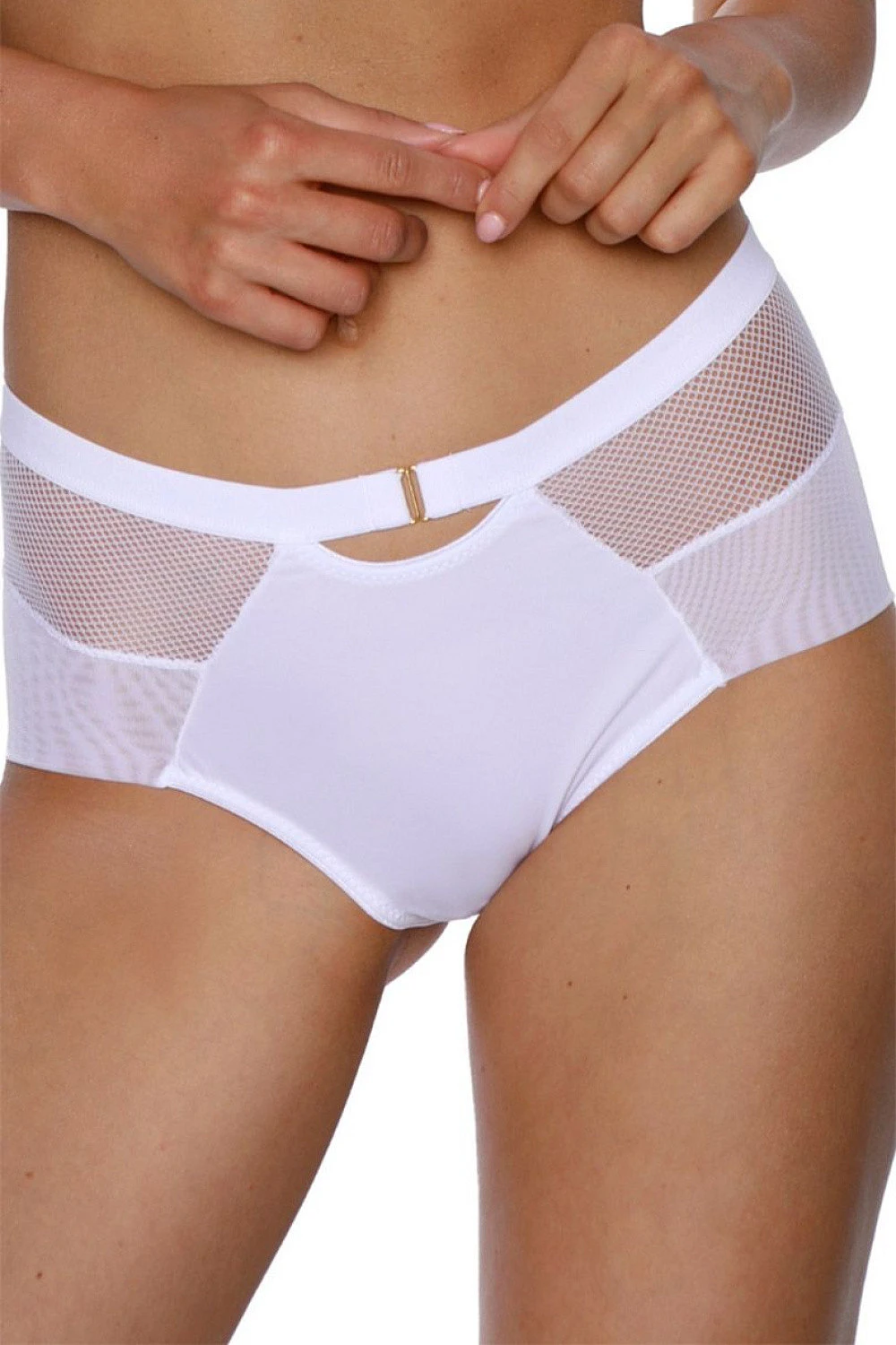 Poznejte figi Lara, které spojují moderní styl s vysokým pohodlím nošení. Tento model je vyroben z lehkého tylu a jemného síťování, vytvářejíc elegantní a propracovanou konstrukci, která zdůrazňuje ženskou siluetu. Na přední straně upoutá pozornost ozdobný zlatý detail a subtilní výstřih, které celému modelu dodávají elegantní a smyslný charakter. Zadní část je navržena z dvojité vrstvy tylu doplněné síťovým zpracováním, což dodává lehkost a jemnost. Široký, stabilní gumový lem zajišťuje pohodlné přizpůsobení a komfort po celý den. Díky pečlivému střihu a promyšlenému výběru materiálů jsou figi Lara neviditelné pod oblečením a hodí se do každého outfitu. Vyšší pas nejenom odpovídá současným trendům, ale také zvyšuje pohodlí při nošení, čímž se stávají ideální volbou na každý den.
