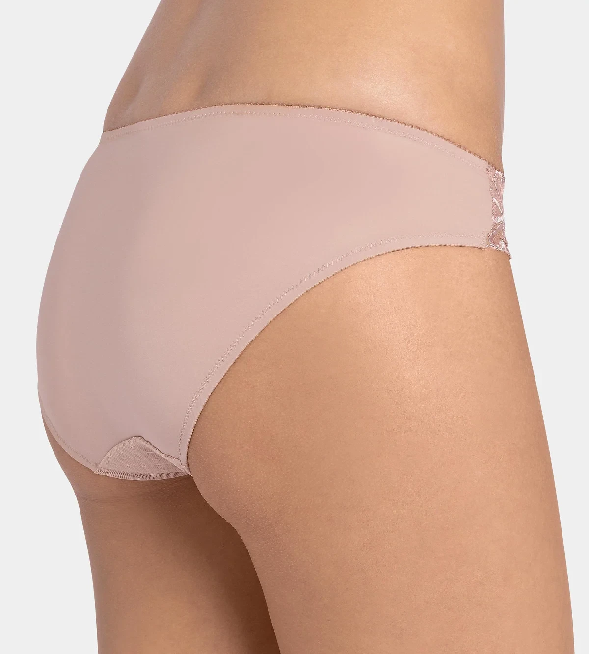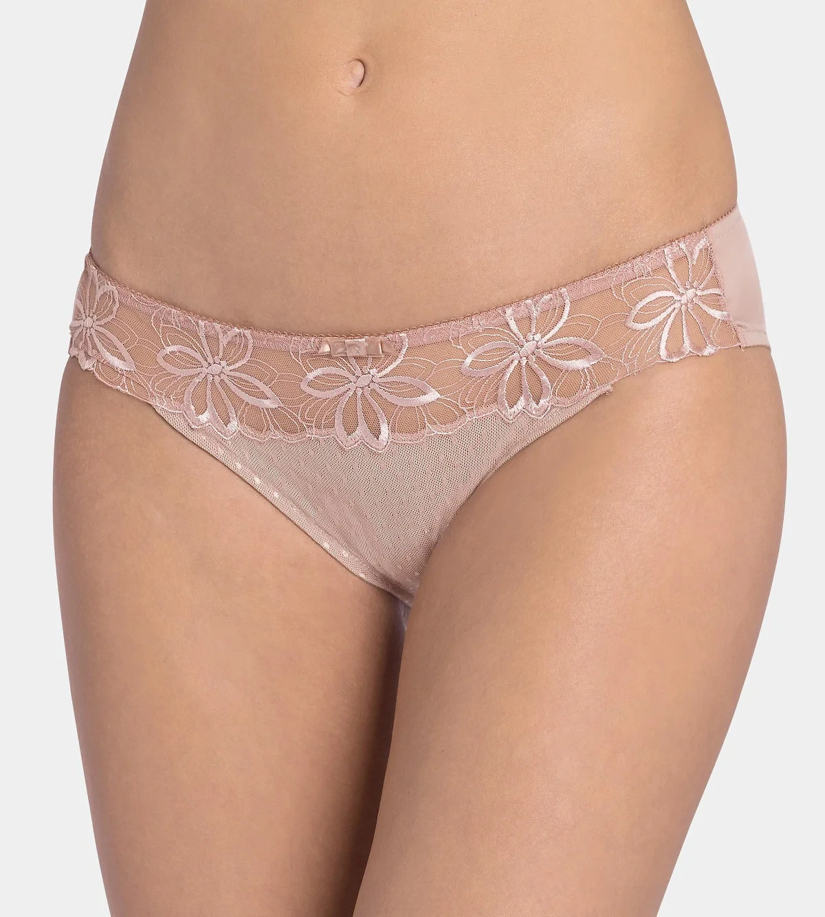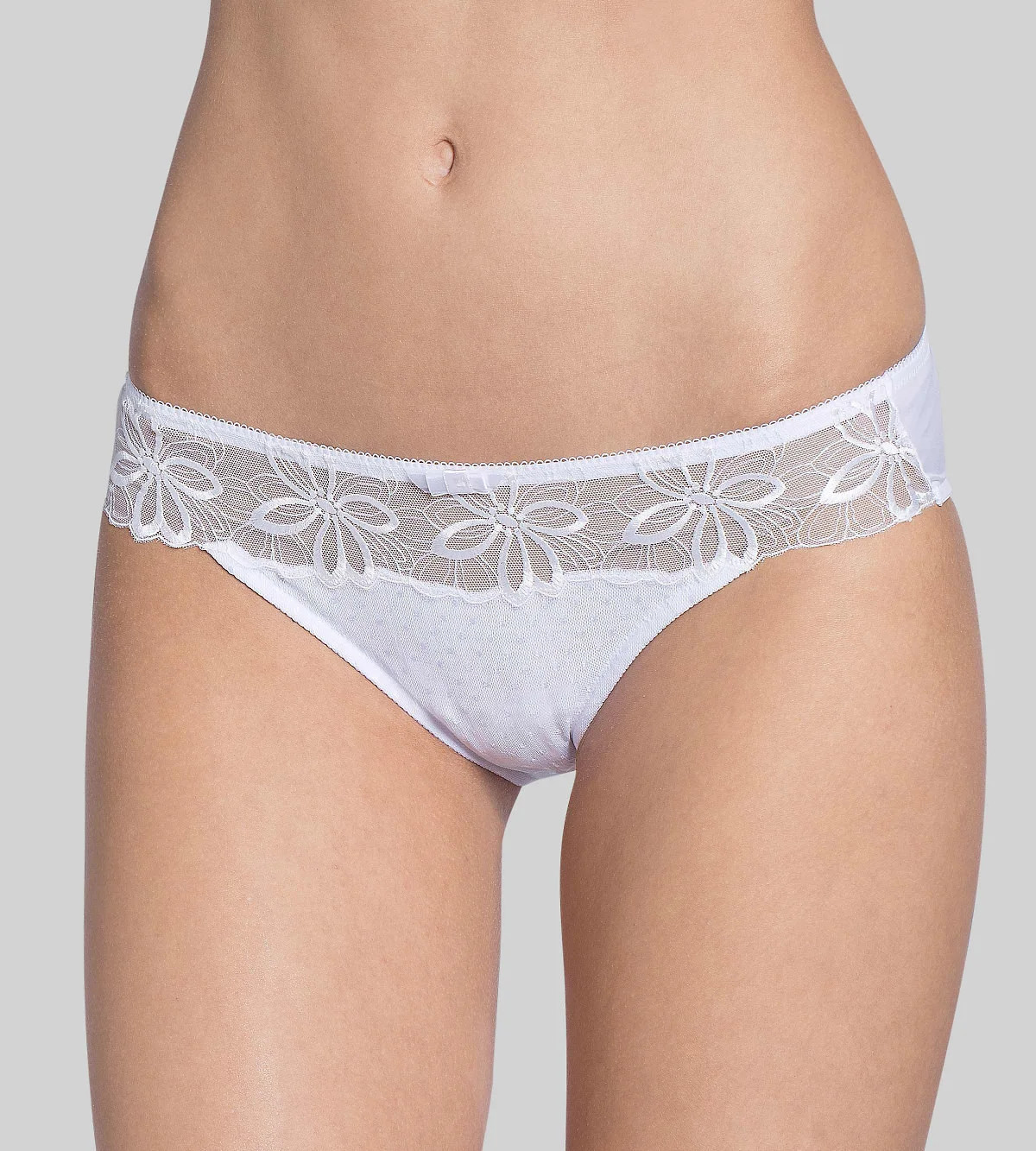 Dámské kalhotky Triumph klasického střihu s nižším sedem a zdobené květinovou krajkou.
