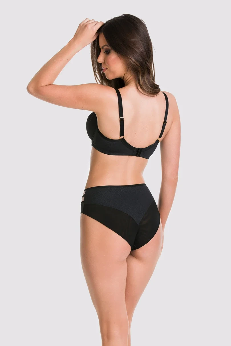Plné kalhotky z černého mikrovlákna, boky z tylu s našitými černými pruhy.