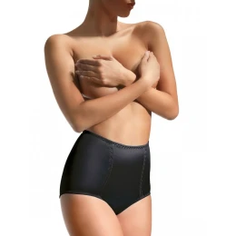 Černé tvarující kalhotky vyššího střihu, v horní části zakončené elastickým páskem. Hladké, příjemné na dotek, zlepšují vzhled břišní partie. Složení: 80 % polyamid, 20 % elastan.