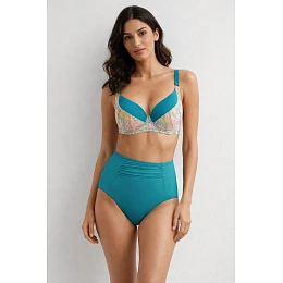 Spodní díl plavek Riviera 20005 značky MEDIOLANO je dokonalou kombinací elegance, pohodlí a funkčnosti. Spodní díl s vysokým pasem dokonale vytvaruje vaši postavu, zvýrazní pas a zakryje drobné nedokonalosti. Je vyroben z vysoce kvalitního materiálu (80 % polyamid, 20 % elastan), který zajišťuje dokonalé přizpůsobení, pružnost a rychlé schnutí. Jemné řasení v přední části dodává ženský nádech a opticky zeštíhluje vaše bříško. Je ideální volbou na pláž i k bazénu - styl a pohodlí v jednom.