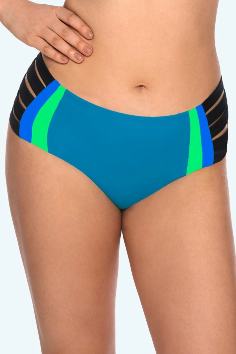 Figi kąpielowe SF 156/7 NEON GREEN to nowoczesna propozycja dla kobiet, które lubią wyrazne kolory i dynamiczny, sportowo-modny styl. Intensywny odcień neonowej zieleni w połączeniu z kontrastującymi wstawkami w kolorze niebieskim i czarnymi paskami przy biodrach tworzy efektowną, przyciągającą wzrok kompozycję.