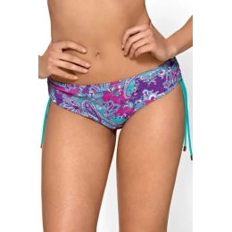 Efektowny, wielobarwny wzór w połączeniu z kontrastowymi sznureczkami nadaje całości lekkości i wakacyjnego charakteru. Elastyczna, wysokiej jakości tkanina gwarantuje komfort noszenia oraz swobodę ruchów zarówno podczas plażowania, jak i pływania. Klasyczny krój fig zapewnia wygodę, a jednocześnie subtelnie eksponuje biodra i nogi.