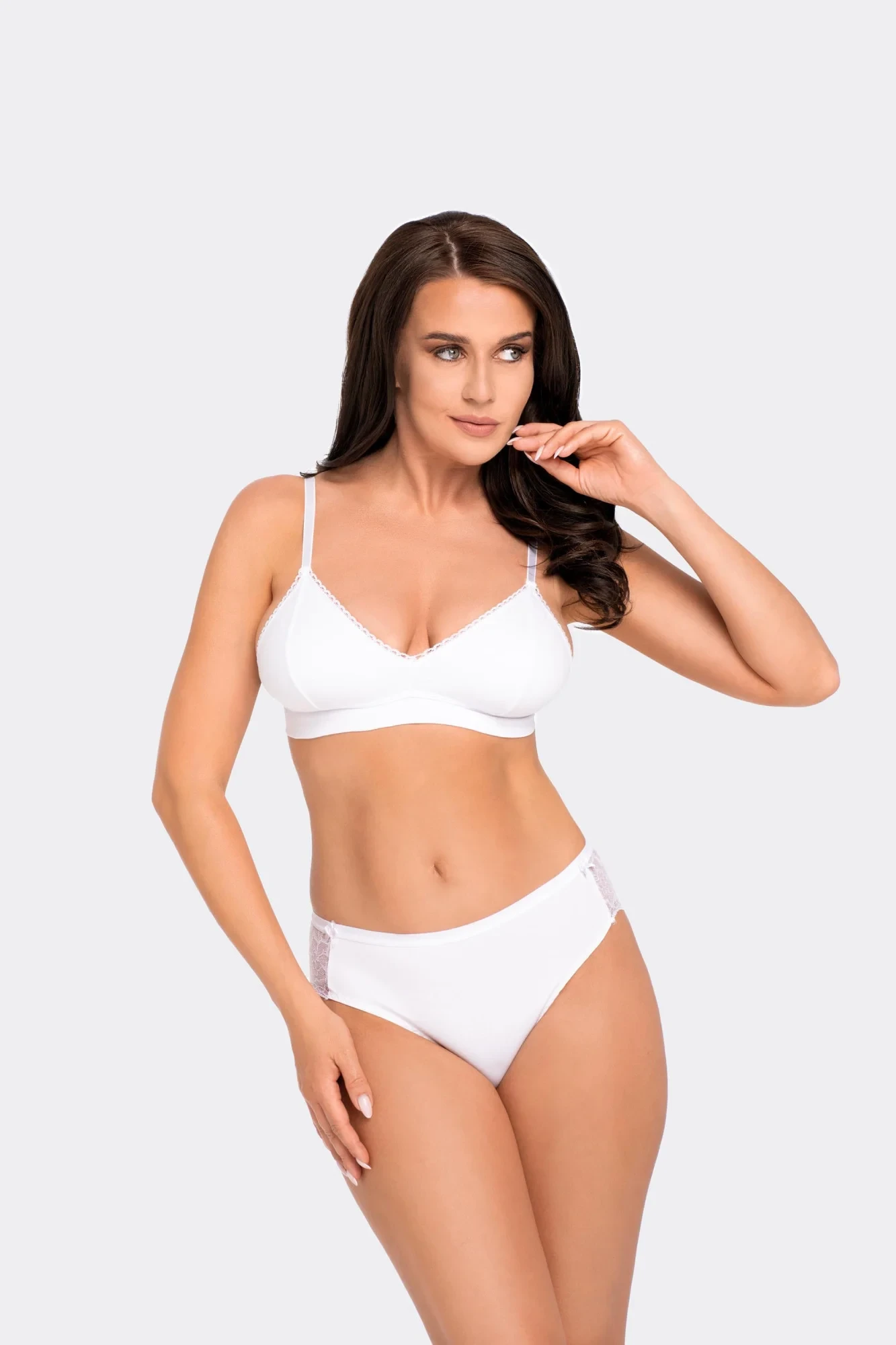 Dokonalá kombinace pohodlí a ženskosti - bavlněné podprsenky s krásným krajkovým zdobením kolem hýždí. Přední část je pohodlně hladká. Plochý elastický pás, který se nerýsuje pod oblečením. Složení: 92 % bavlna, 8 % elastan.EAN čárové kódy zboží jsou: