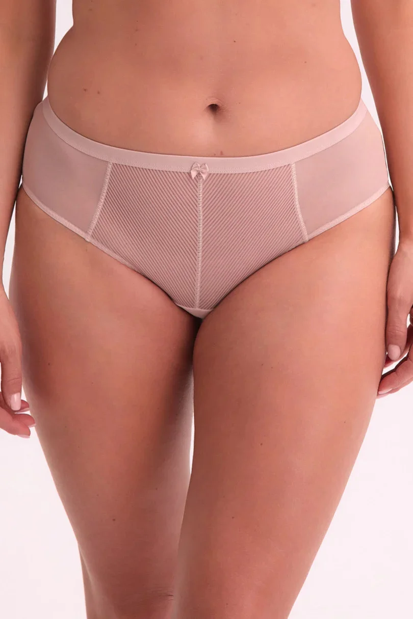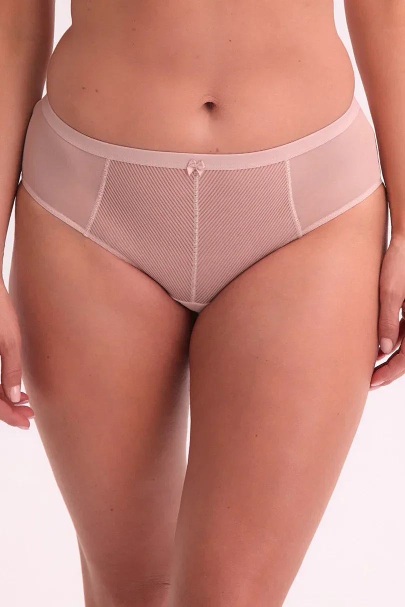 Poznaj eleganckie i niezwykle wygodne figi GAIA Sonia 1058 w subtelnym, różowym odcieniu. Ten klasyczny model fig pełnych wyróżnia się połączeniem delikatnej dzianiny w paski i transparentnego tiulu po bokach, co nadaje bieliźnie nowoczesny, lekki charakter. Idealnie przylegają do ciała, podkreślając naturalne kształty i zapewniając dyskrecję pod ubraniem.