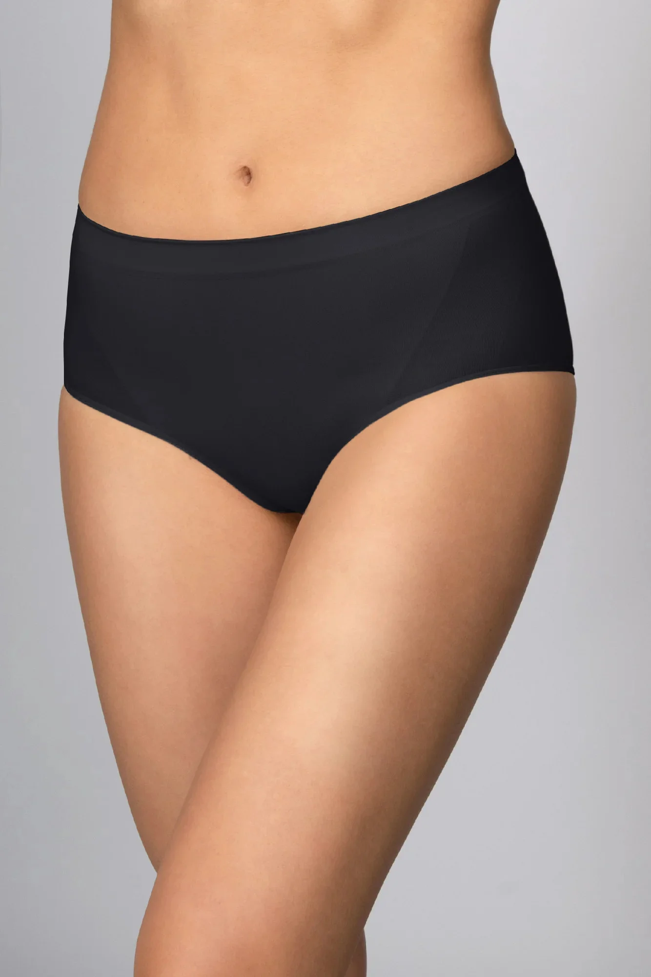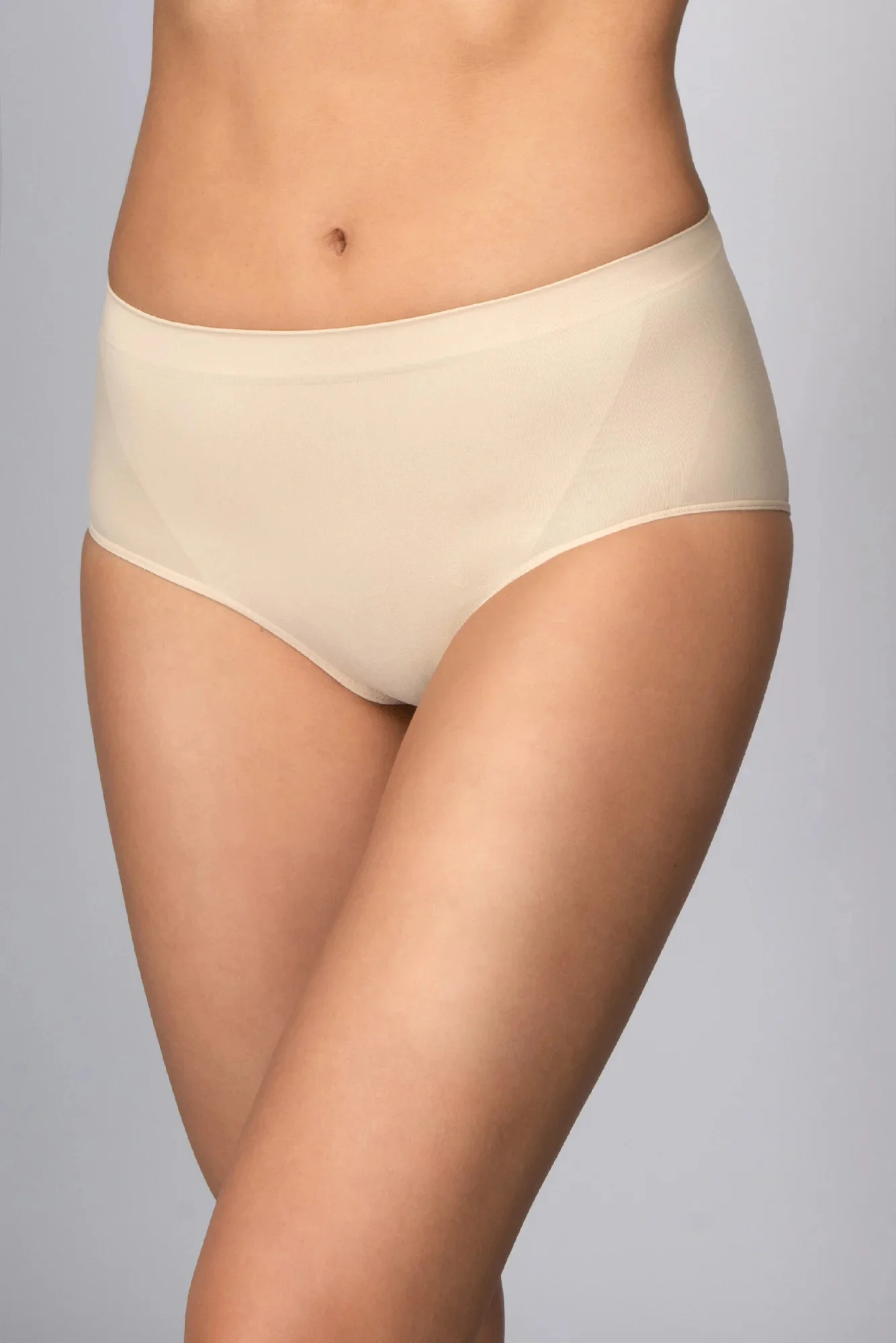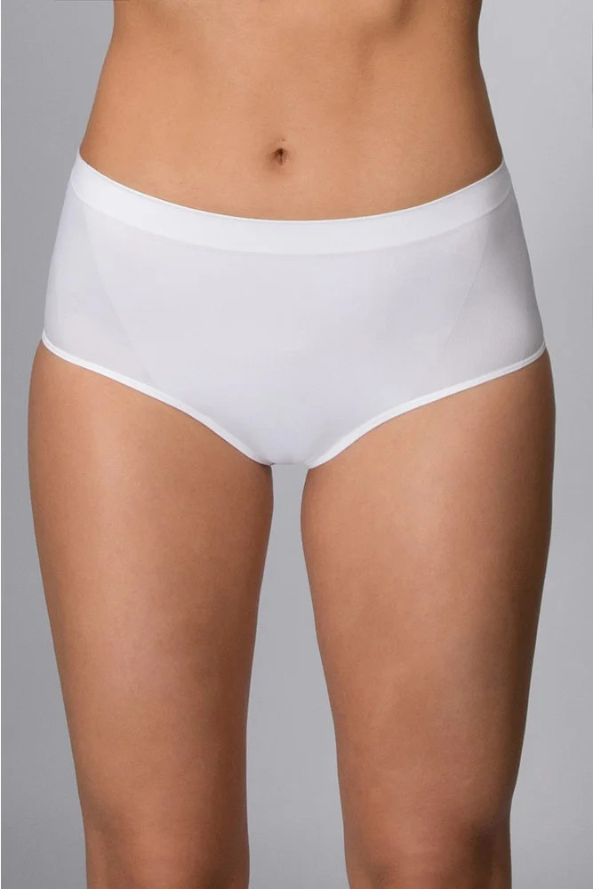 Elegantné dámske nohavičky, vyrobené z kvalitného bavlneného úpletu, na bokoch vsadky z čipky a pruhovaného úpletu, hladký zadný diel, vysoký pás.