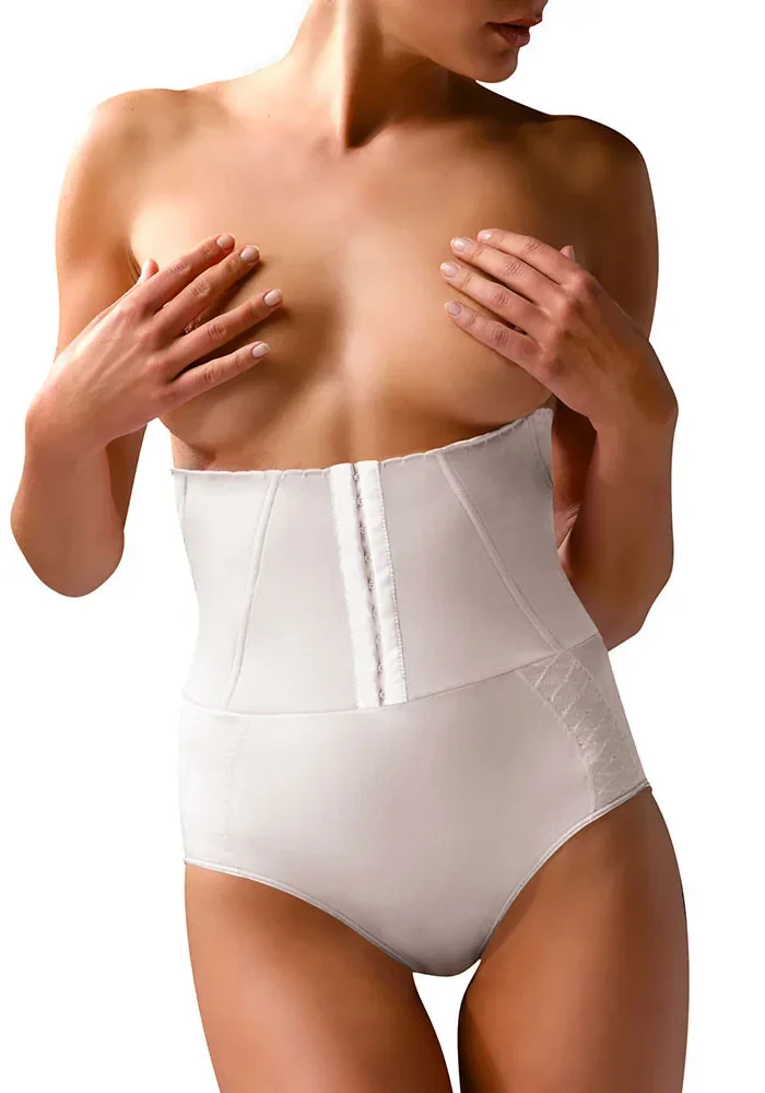 Dámské stahovací kalhotky 269 JULIMEX - béžová barva - s vysokým pasem - bezešvá technologie lemování okrajů INVISIBLE-LINE® - při nošení se nerolují a nesesouvají díky systému ANTI-SLIDE® - spodní část je střižená laserem - zplošťují bříško - zmenšují objem stehen a boků - zakrývají všechny faldíky a tukové válečky - speciální střih zadního dílu tvaruje a nadnáší hýždě - bavlněná hygienická vložka