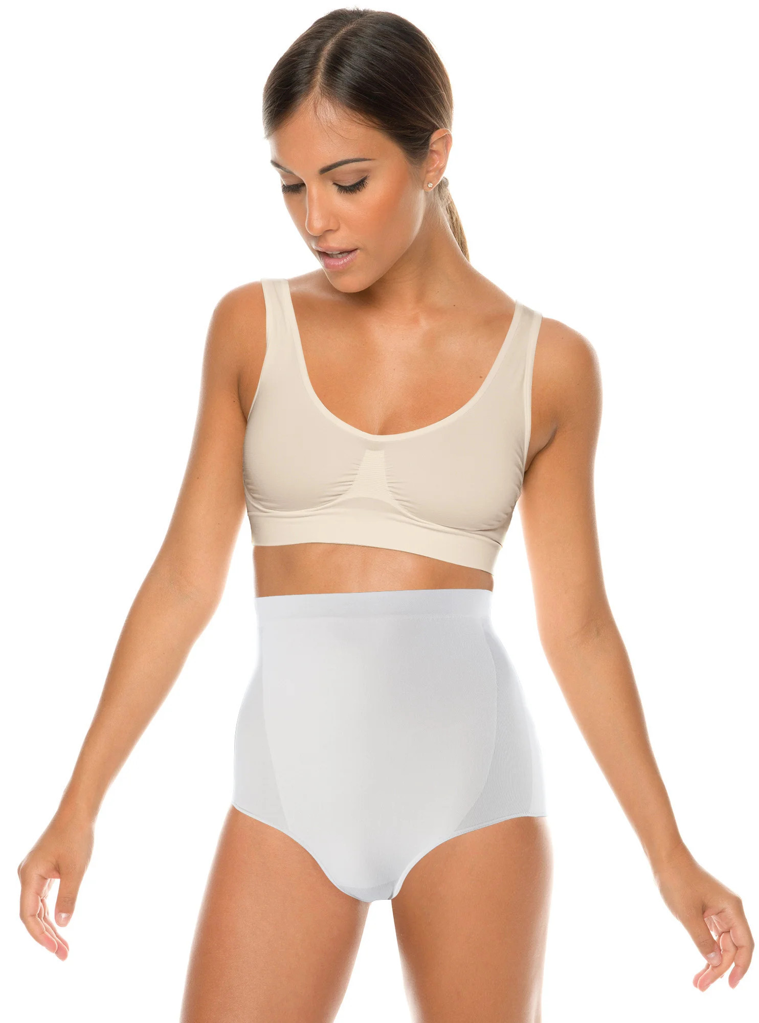 Elegantné dámske nohavičky, vyrobené z kvalitného bavlneného úpletu, na bokoch vsadky z čipky a pruhovaného úpletu, hladký zadný diel, vysoký pás.