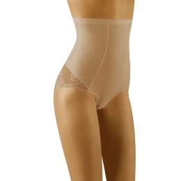 Kalhotky s vysokým pasem zdobené krajkou na hýždích. Modelovací linie pro oblast břicha a boků. Hladká přední a zadní část ze specializovaného úpletu jemně zeštíhluje postavu a zvýrazňuje její tvar. Vyšší pas také opticky zeštíhluje oblast pasu, zatímco horní část je z vnitřní strany podšitá silikonem, což zvyšuje pohodlí prádla a zabraňuje jeho sklouzávání z těla. Složení: 58 % polyamid, 42 % elastan.