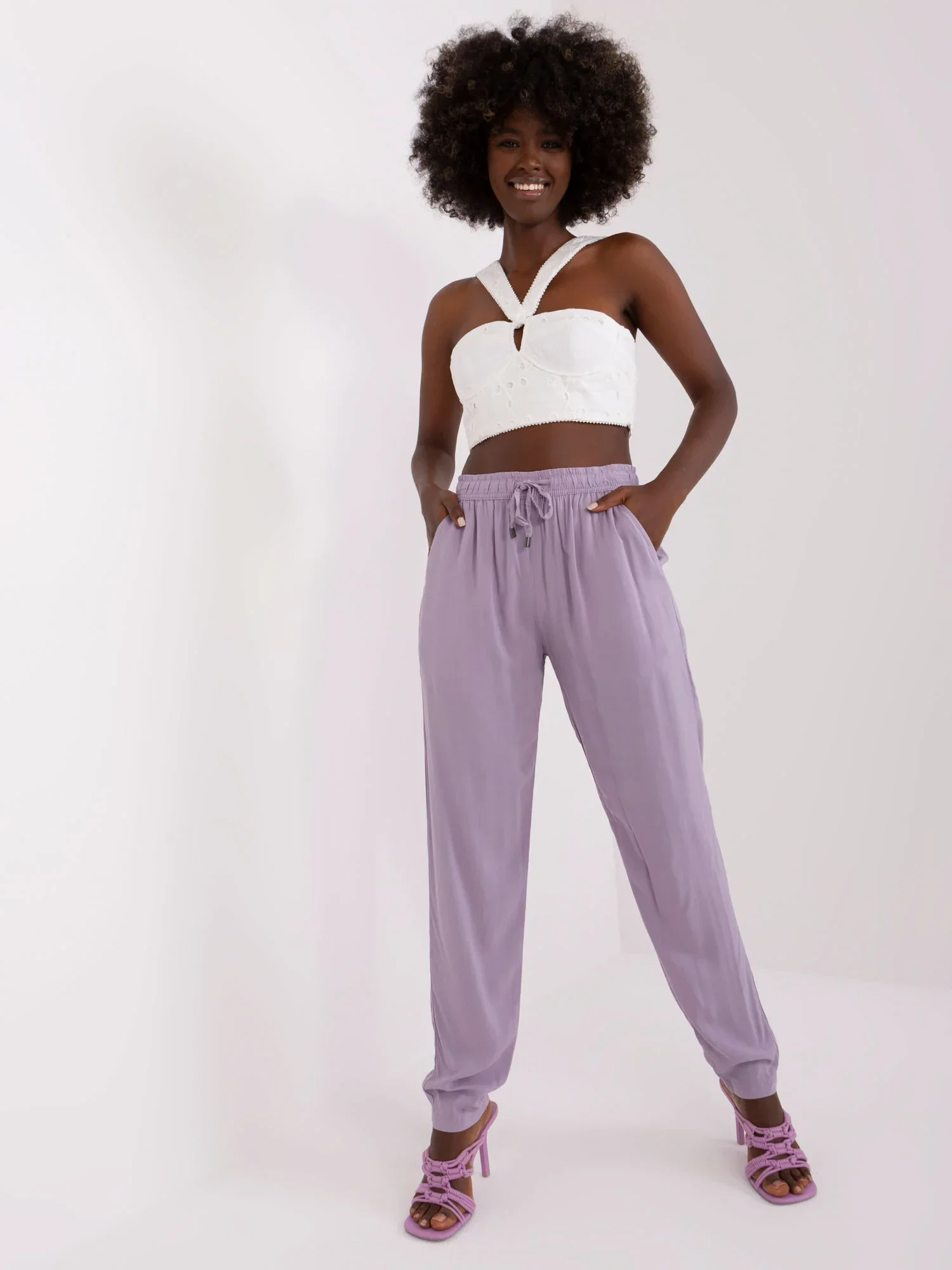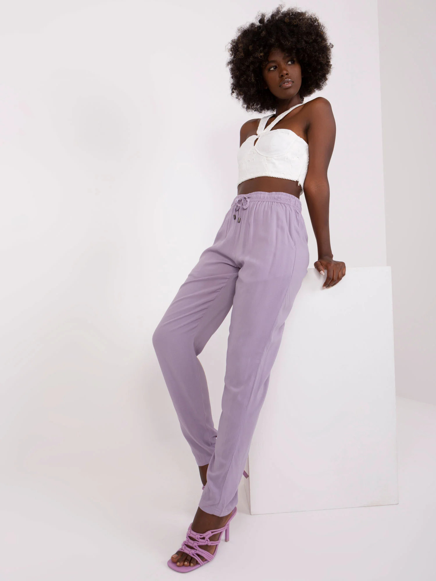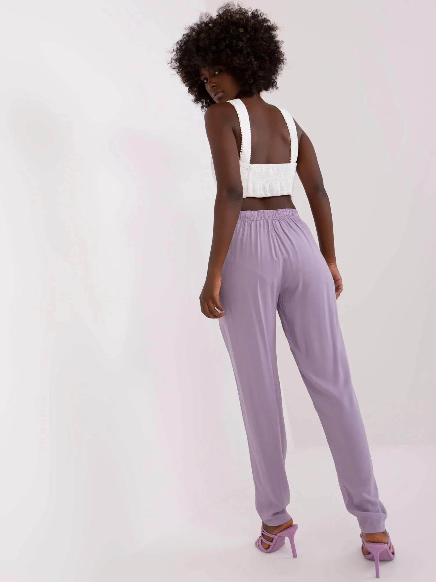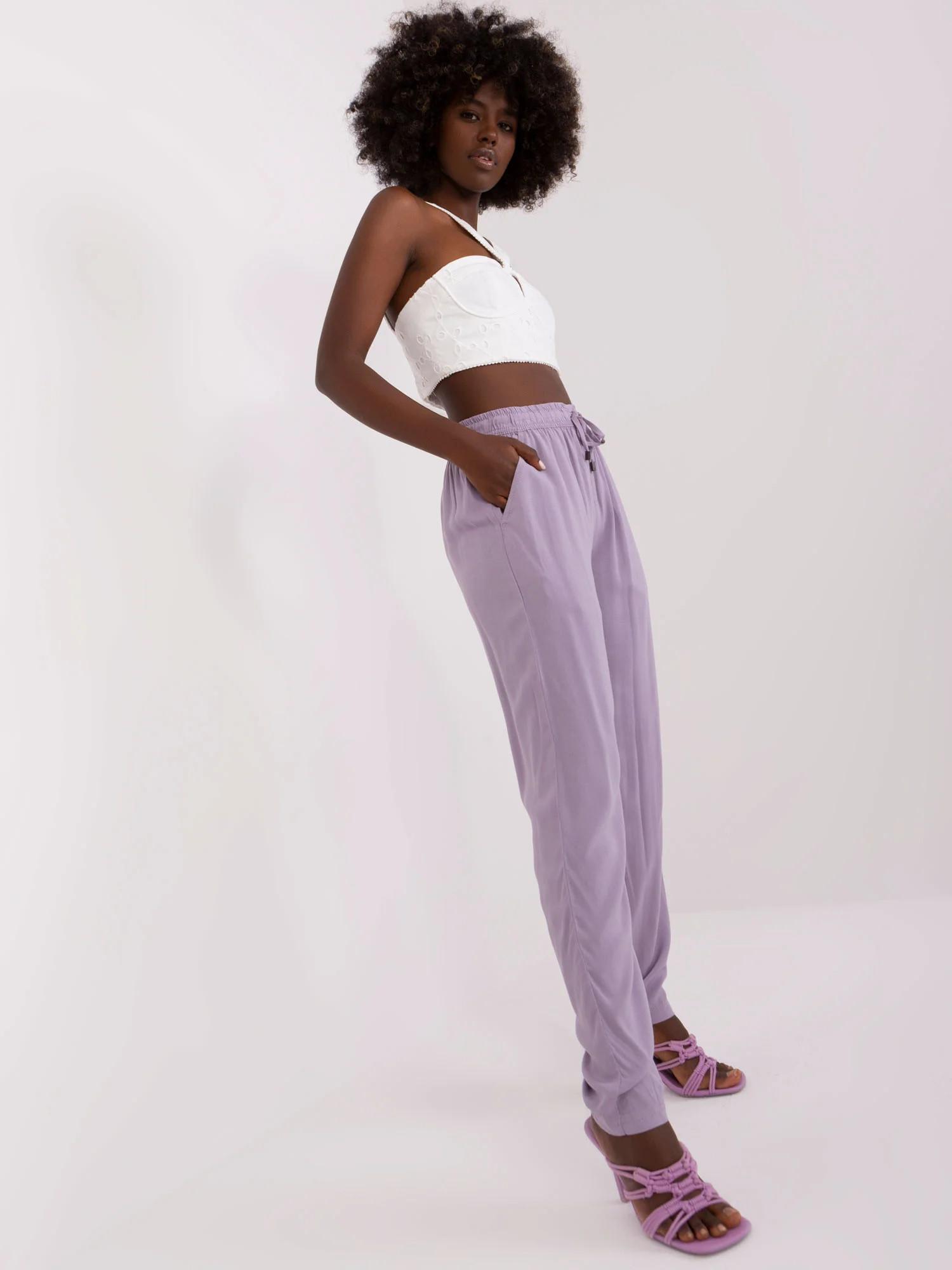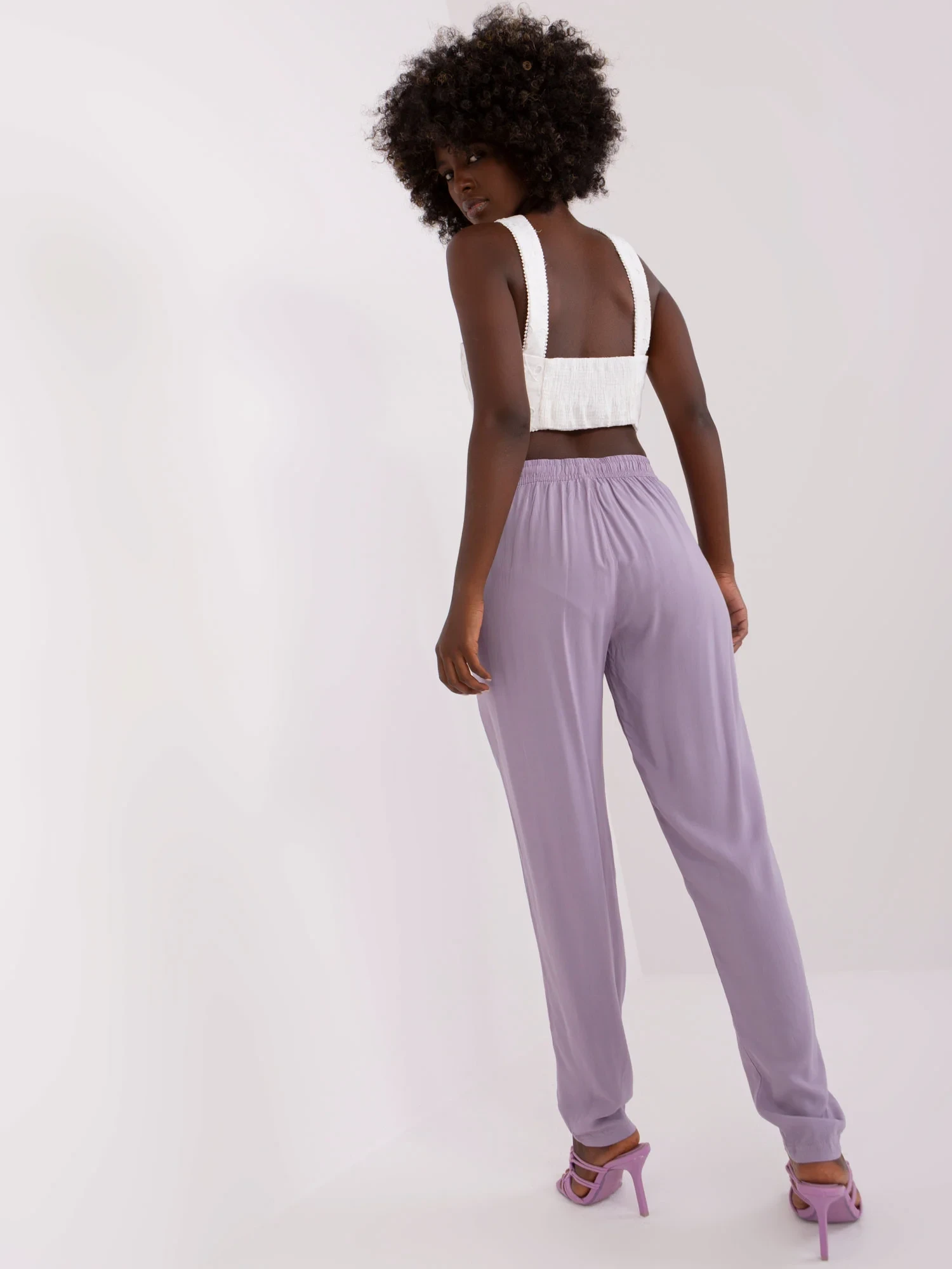 Světle fialové kalhoty z viskózové tkaniny PODLE ÚROVNĚ .