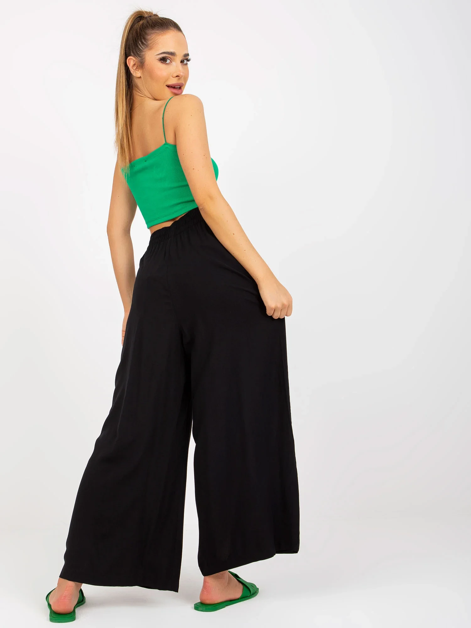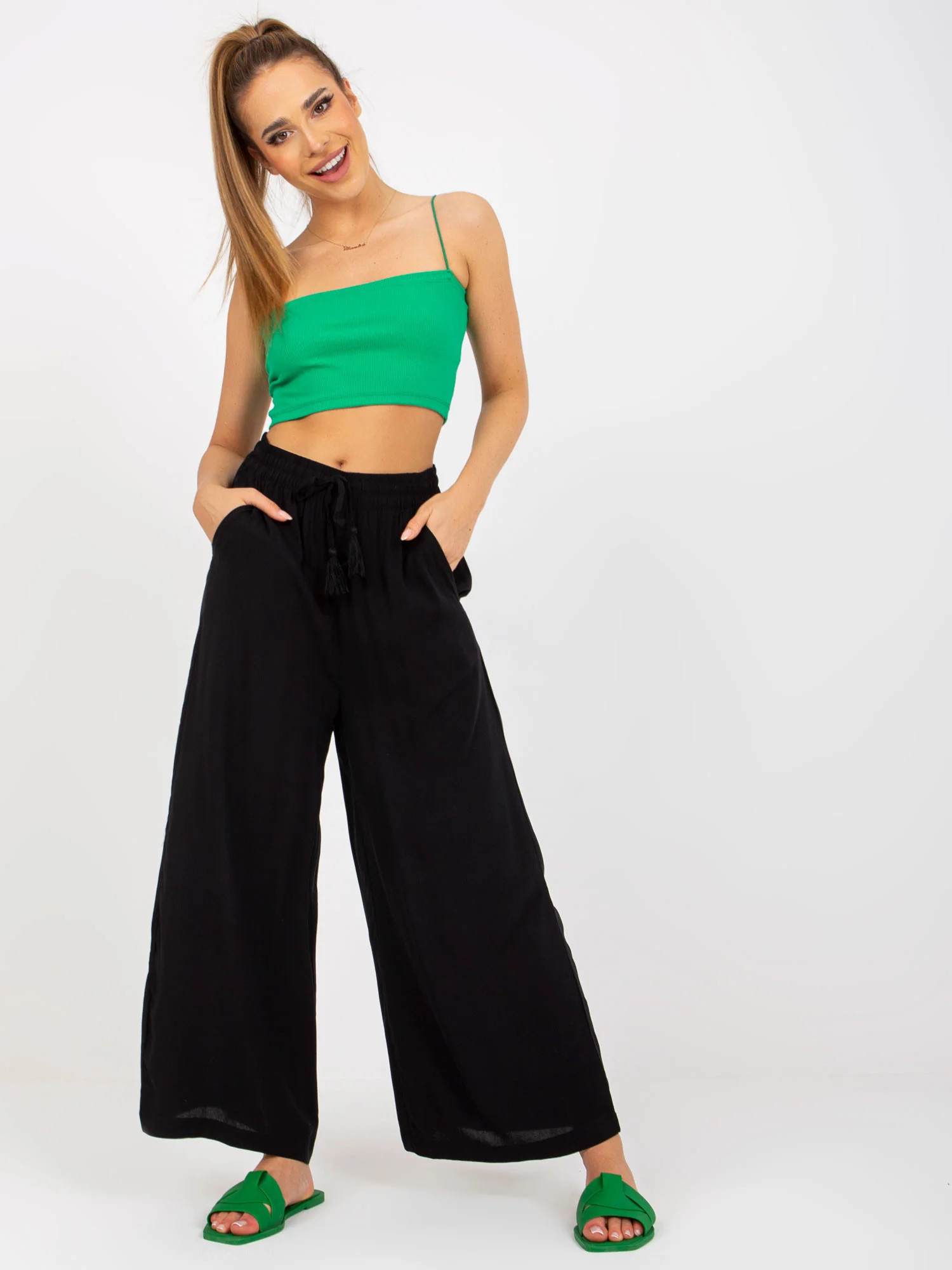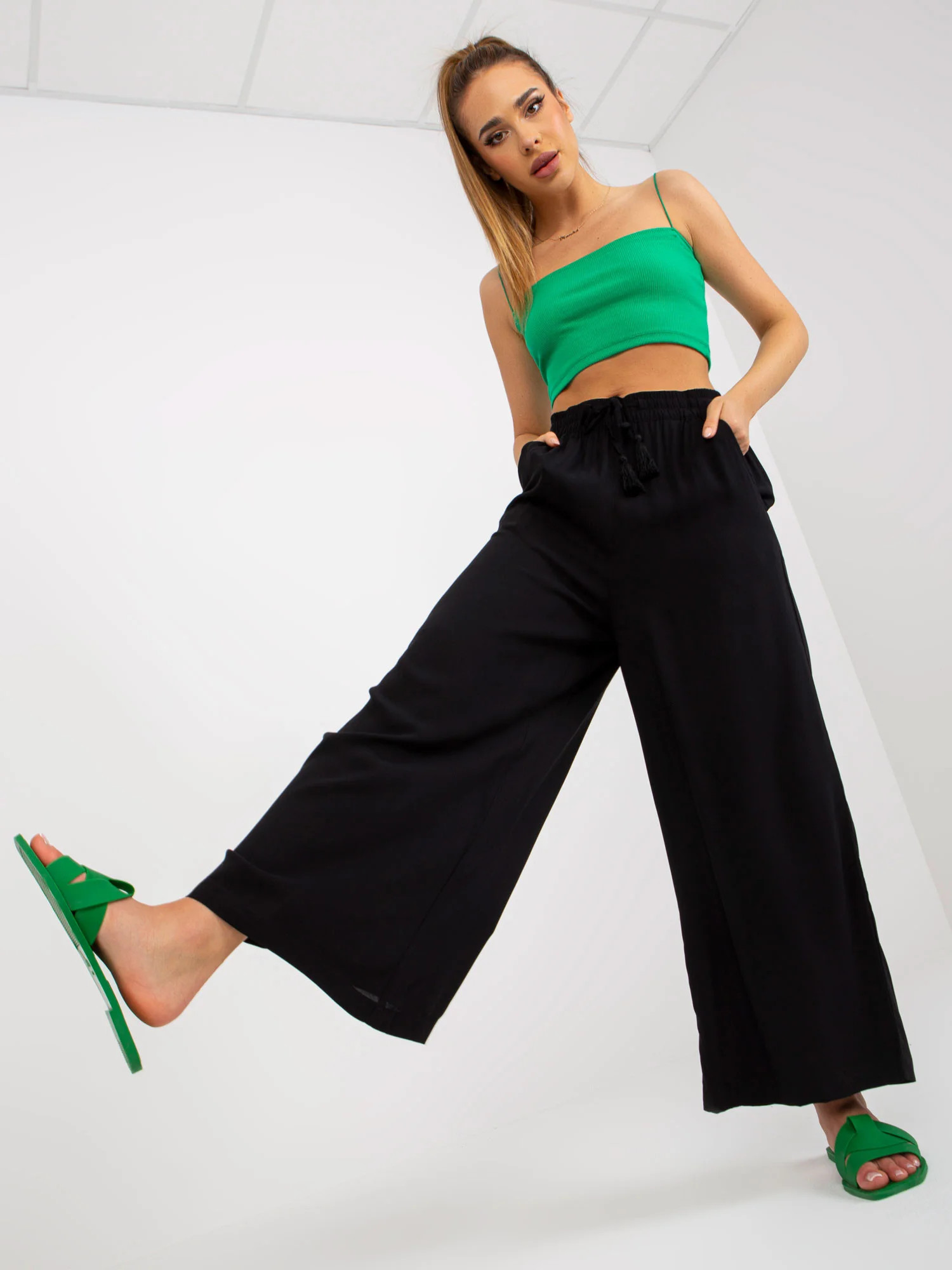 Černé látkové kalhoty se širokými nohavicemi SUBLEVEL .